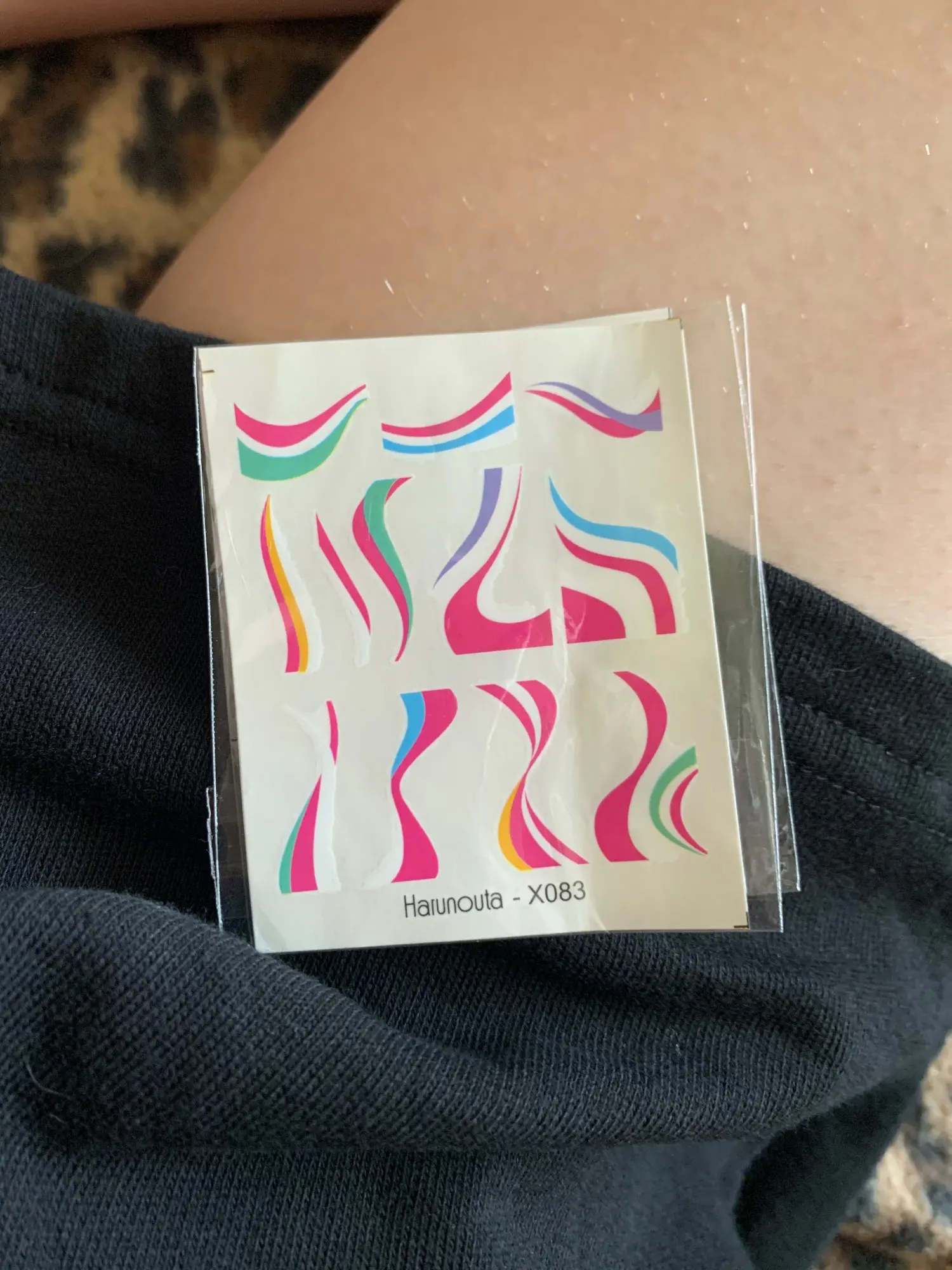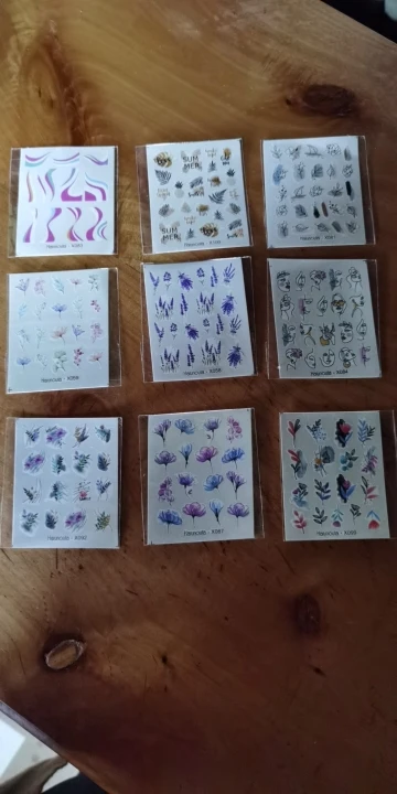 наклейки пришли очень быстро, их совместили с другой посылкой. качество хорошее, цвета приятные кроме гряхно-оранжевого который посредине, френч с таким цветом не сделаешь. Продавца однозначно рекомендую.