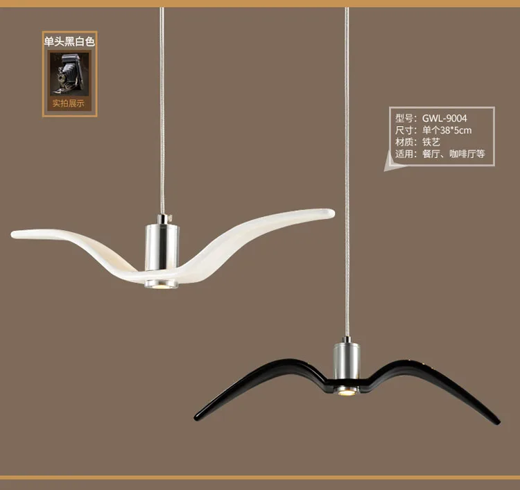 Скандинавская Подвесная лампа в виде чайки, дизайнерские светодиодные люстры для бара, кухни, люстра с птицами, потолочный светильник, осветительный прибор