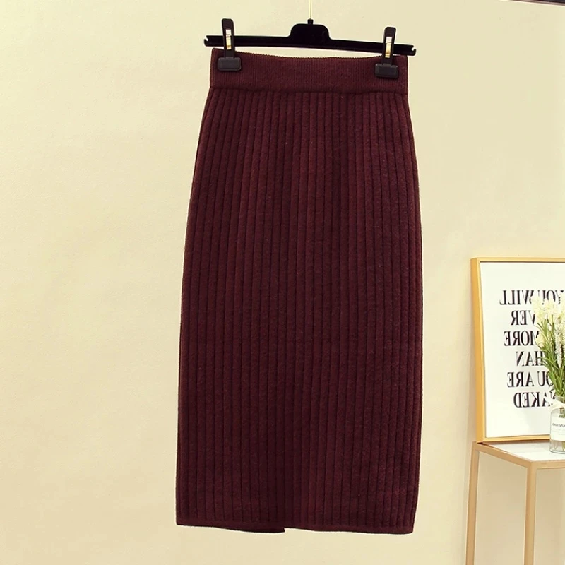 Для женщин осенняя вязанная длинная юбка, сексуальная юбка с завыше...