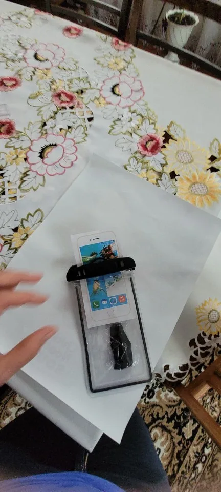 Положила чехол в кастрюлю с водой, за десять минут бумага внутри не намокла. Надеюсь, с телефоном будет так же