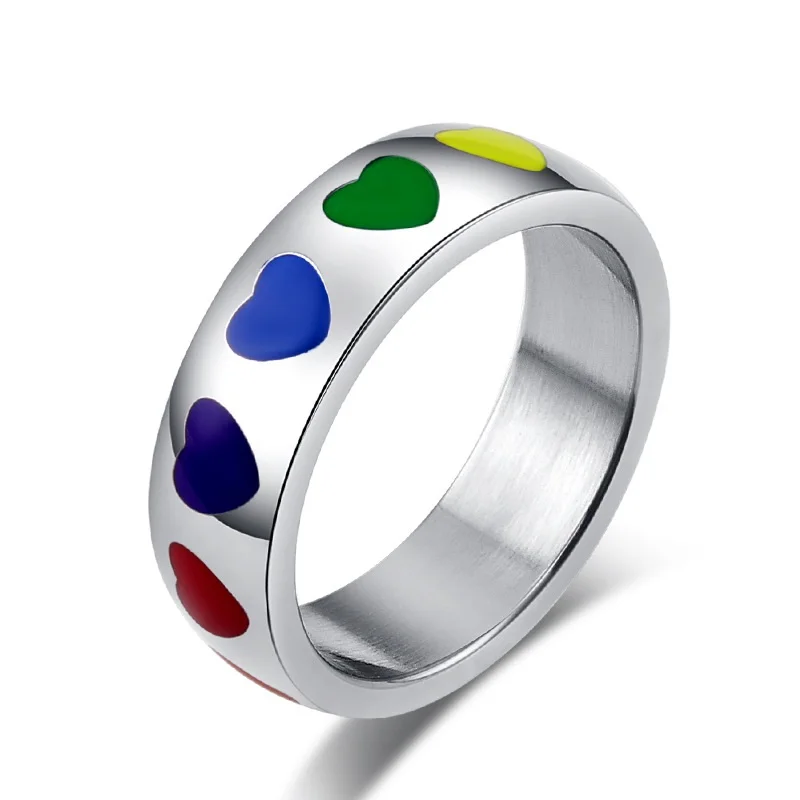 Новое Трендовое кольцо для влюбленных из титановой стали, кольцо из нержавеющей стали с эмалью в виде сердца, гордости, радуги для детской модели, модные ювелирные изделия унисекс