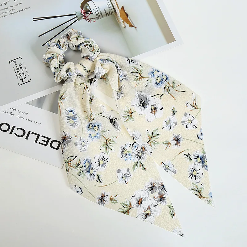 Модные Цветочный принт шелковая лента для волос Scrunchies однотонные Цвет лента для волос женский хвостик шарф резинки для волос аксессуары для волос