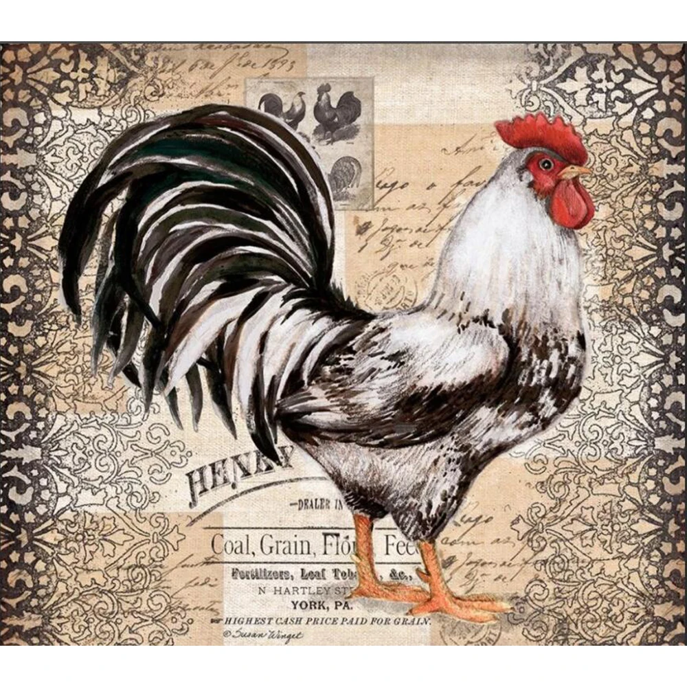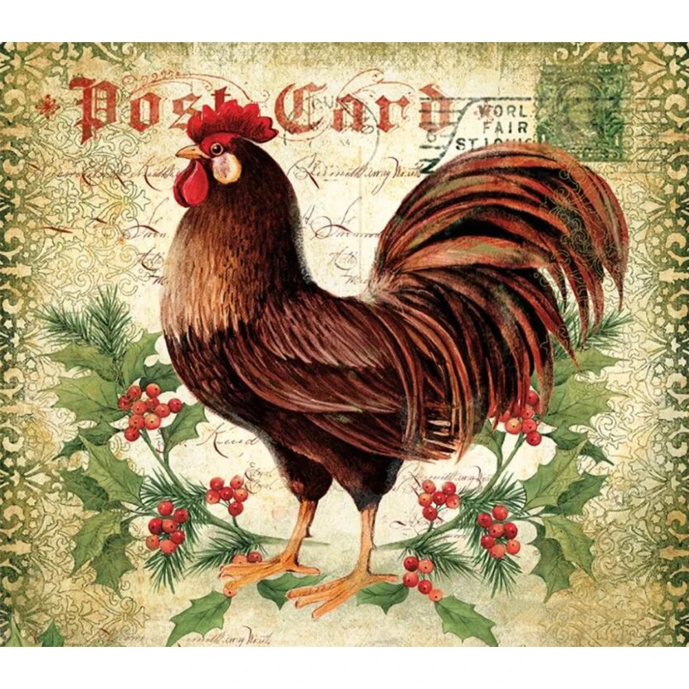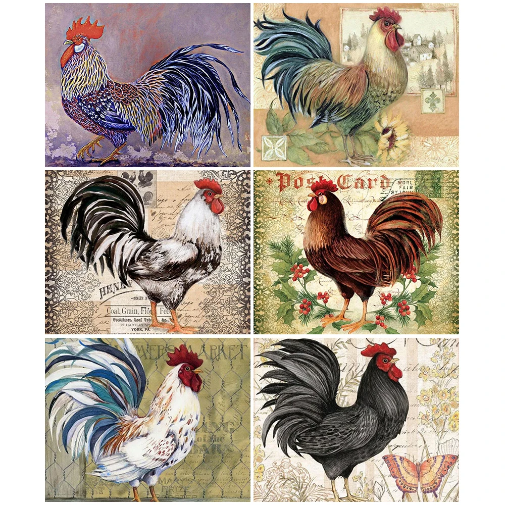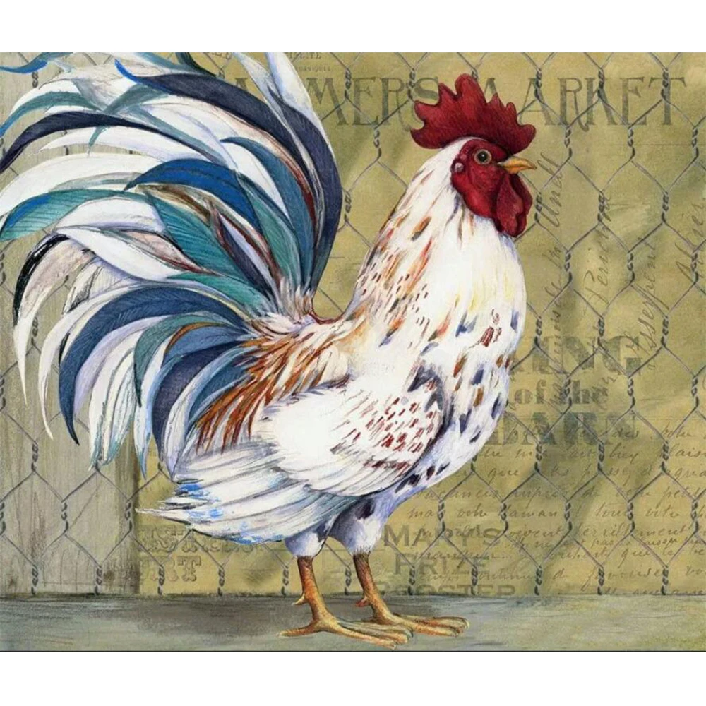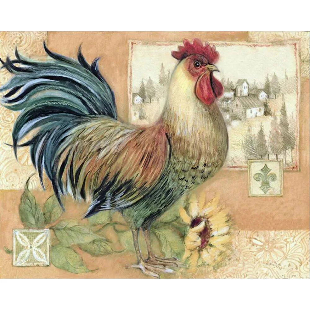 Разноцветного квадратногоНабор для рисования с круглыми камнями и полотном роспись с петухом курица Вышивка крестом Алмазная мозаика арт-деко подарок