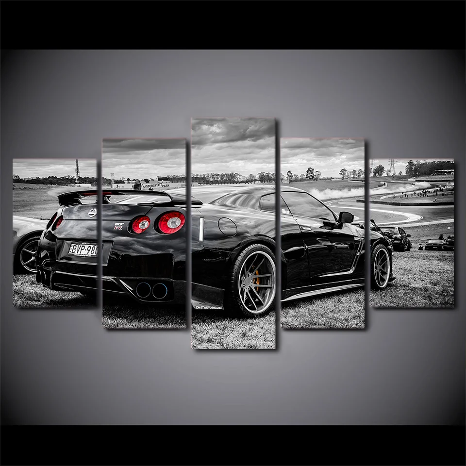 Холст без рамки, 5 панелей, Nissan GTR, классический спортивный авт...