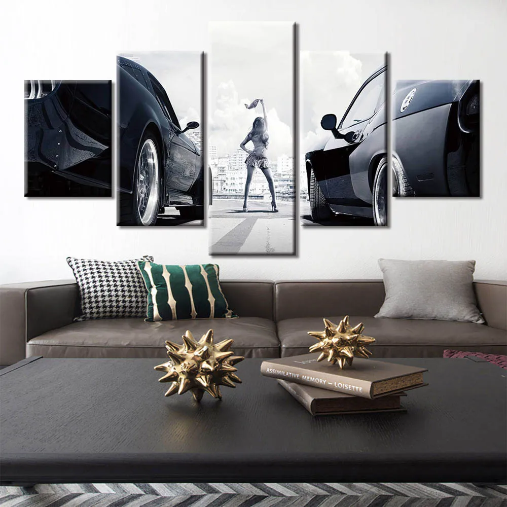 5 панелей "Форсаж" гоночные автомобили ", черно-белые настенные худ...