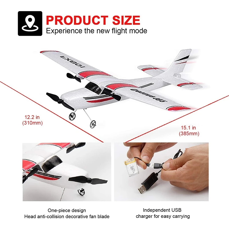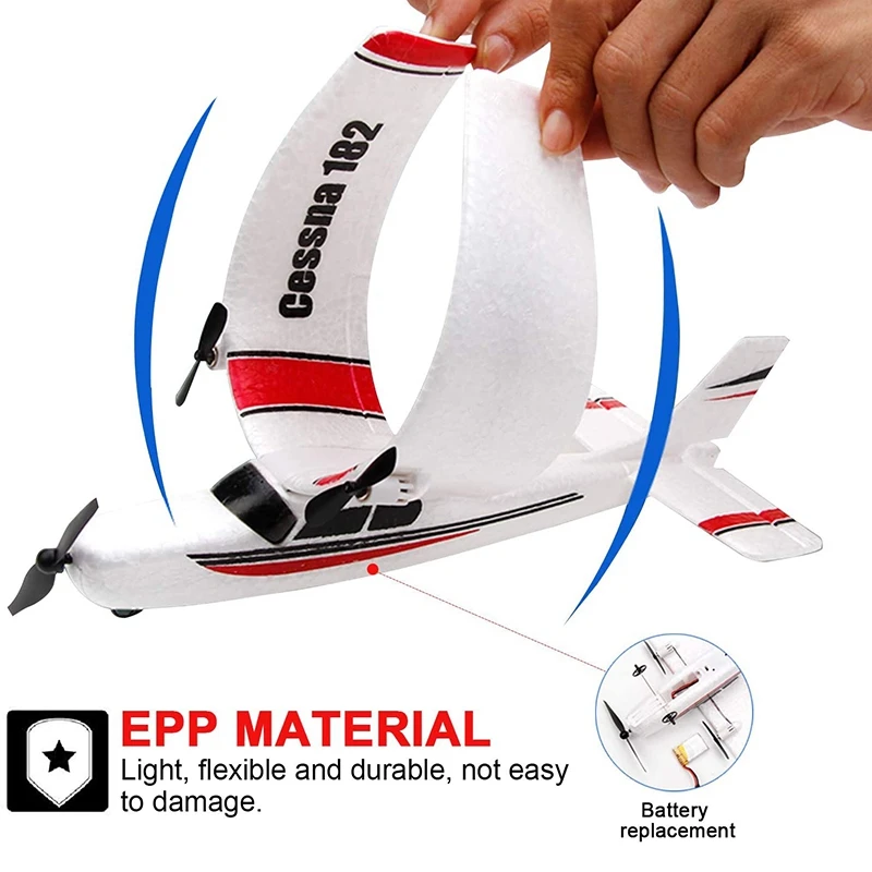 Этот радиоуправляемый самолет изготовлен из материала EPP, прочный и светильник. Согласно внешнему виду Cessna 182, дизайн этого RC самолета, классный внешний вид заставит вас полюбить его. Двухканальный дизайн, легче управлять, очень подходит для начинающих! Кроме того, это хороший подарок для ваших детей, это goo как для развития заинтересованности, так и для развития интеллекта. Особенности: Все детали можно легко собрать без клея. Вы можете сделать это самостоятельно. Разработан в соответствии с реальной плоскостью Cessna 182, с прохладным внешним видом. Изготовлен из EPP материала, высокая гибкость, не легко сломать. Он принимает высокоэффективный пневматический контурный дизайн, обеспечивает хорошую стабильность, работоспособность и плавность. Супер сильная конфигурация питания. Двухканальный дизайн, легче контролировать, просто Потренируйтесь несколько раз, вы можете начать работу. Позвольте вам завершить курс таксирования, снимать и сажать проще и выполнять сенсационное шоу. Если у вас есть какие-либо проблемы, пожалуйста, не стесняйтесь связаться с нами без колебаний. Спецификация: Наименование товара: радиоуправляемый самолет Время зарядки: около 35 мин Время работы: около 20 мин Расстояние управления: 120 м Цвет: белый Для дистанционно управляемого летательного аппарата Батарея: 3,7 V/300mA (все указанные аккумуляторы входят в комплект поставки) Аккумулятор пульта дистанционного управления: 2 батарейки типа АА (не входят в комплект) Материал: EPP Частота: 2,4 ГГц Возраст: 14 + Размер: 38*30*9 см Примечание: Головка пропеллера не может поворачиваться, только для украшения, и используется для предотвращения столкновений. Пожалуйста, держите тело подальше от пропеллера, когда пропеллер вращается. После использования, пожалуйста, выньте батарею в пульте дистанционного управления и скидка батареи от продукта. При зарядке аккумулятора требуется опеку для взрослых. Информация о посылка: Размер посылка: 42*14,5*7,5 см Посылка Вес: 287 г Посылка в подарочной коробке Посылка: 1 * RC самолет 1 * пульт дистанционного управления 1 * Аккумулятор 1 * зарядный кабель 1 * отвертка 2 * запасной пропеллер 1 * Руководство пользователя