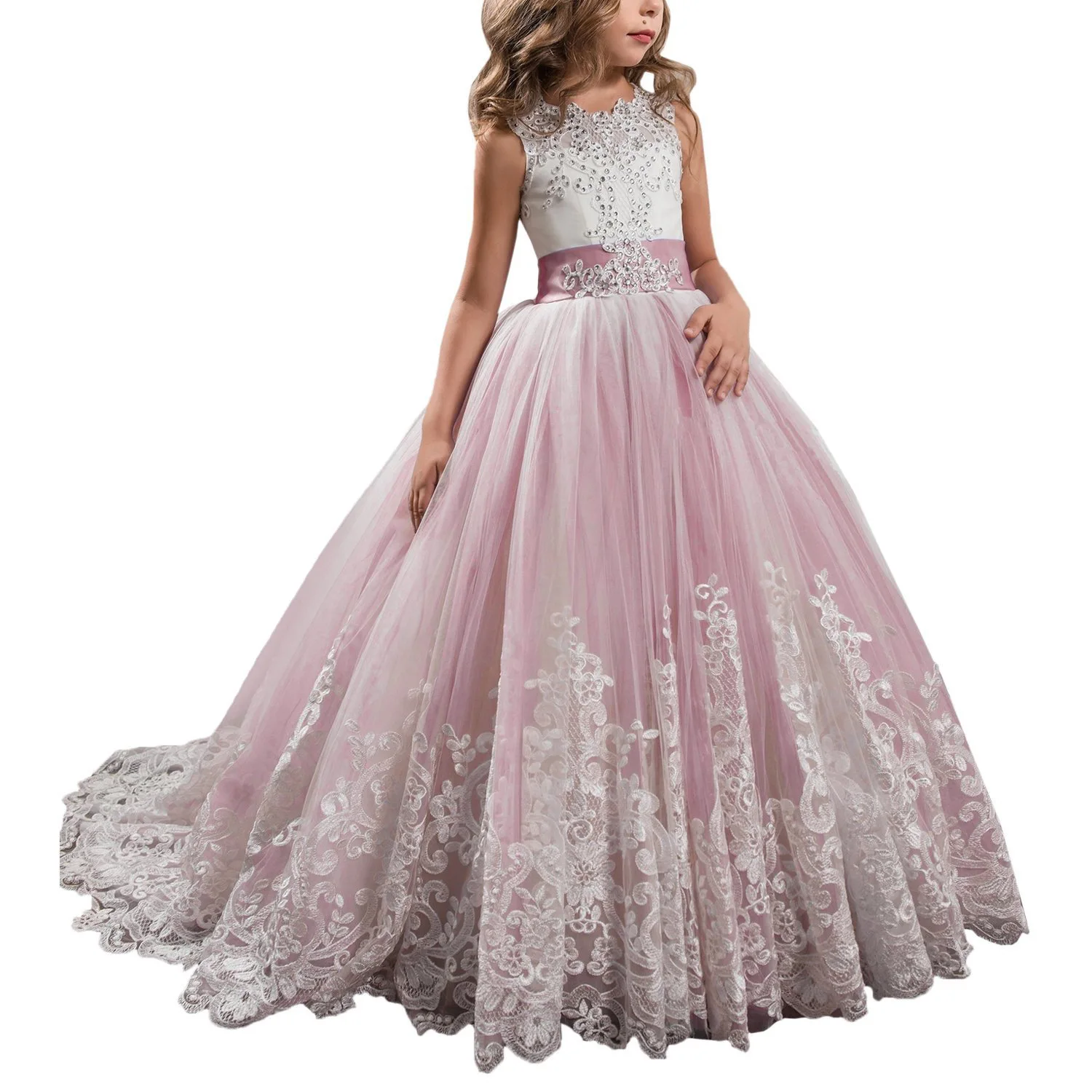 Кружевное длинное свадебное платье для девочек 6, 7, 8, 9, 10, 11, ...