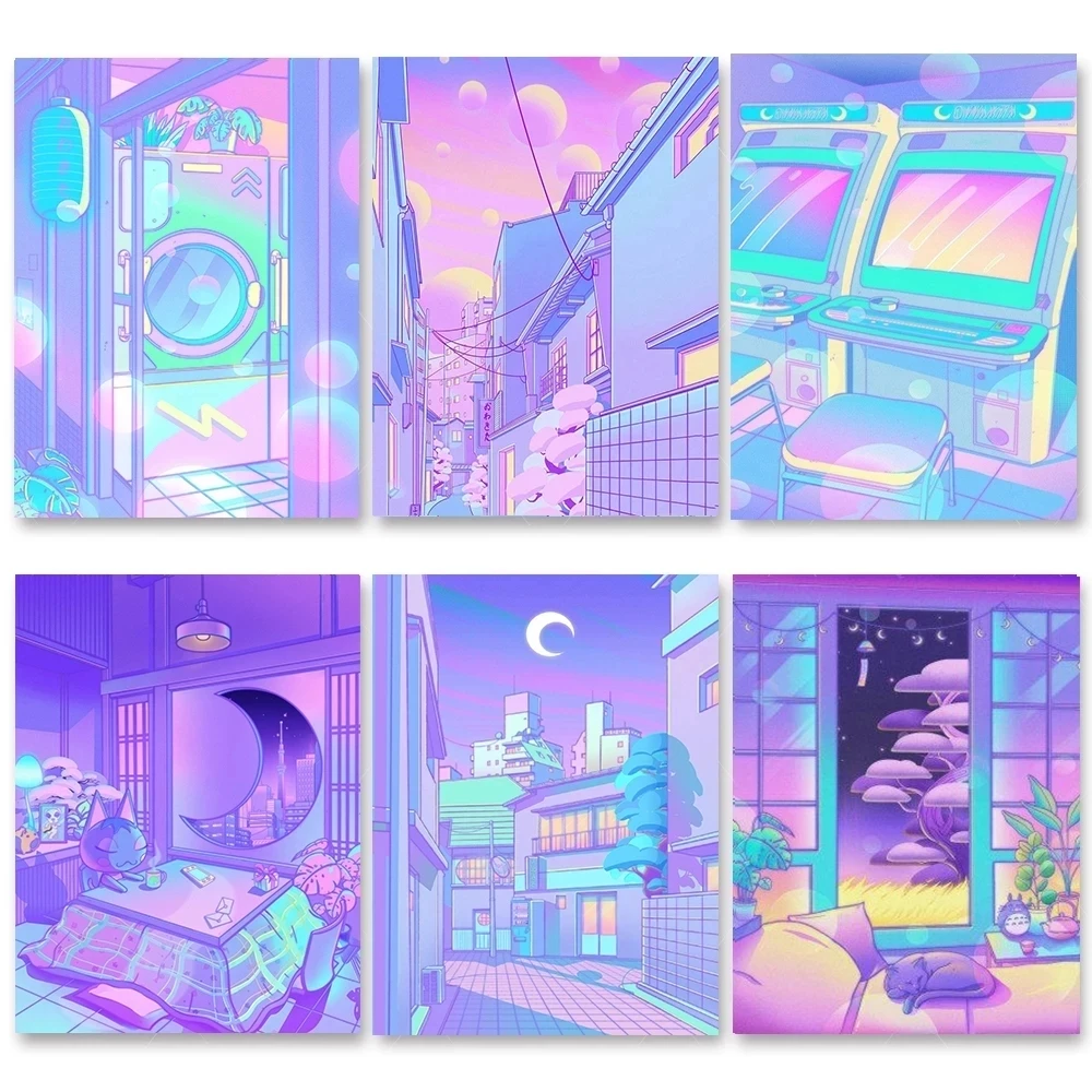 Алмазная 5d мозаика в виде цветной комнаты, полноформатная круглая вышивка, мозаика, вышивка крестиком в японском стиле стразы, художественное украшение для дома