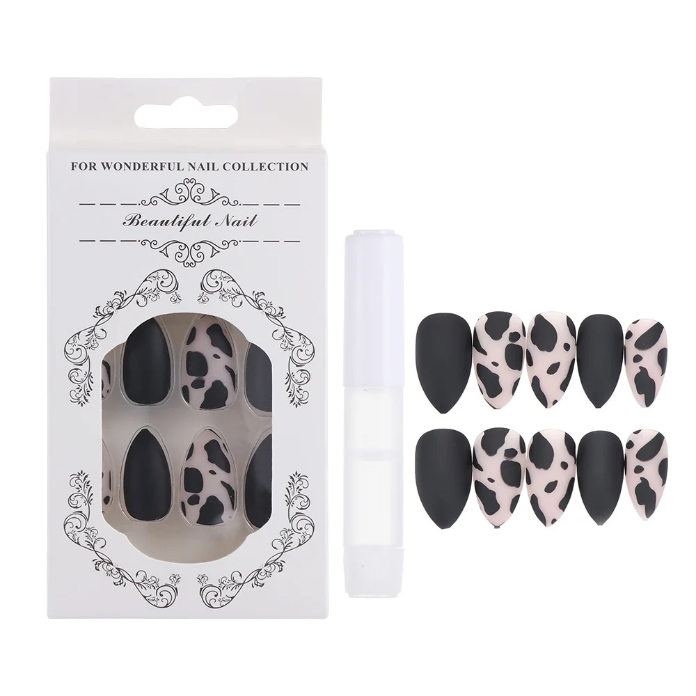 Накладные ногти на шпильке, 24 шт., накладные ногти с матовым черным леопардом, носимые женские акриловые накладные ногти с полным покрытием