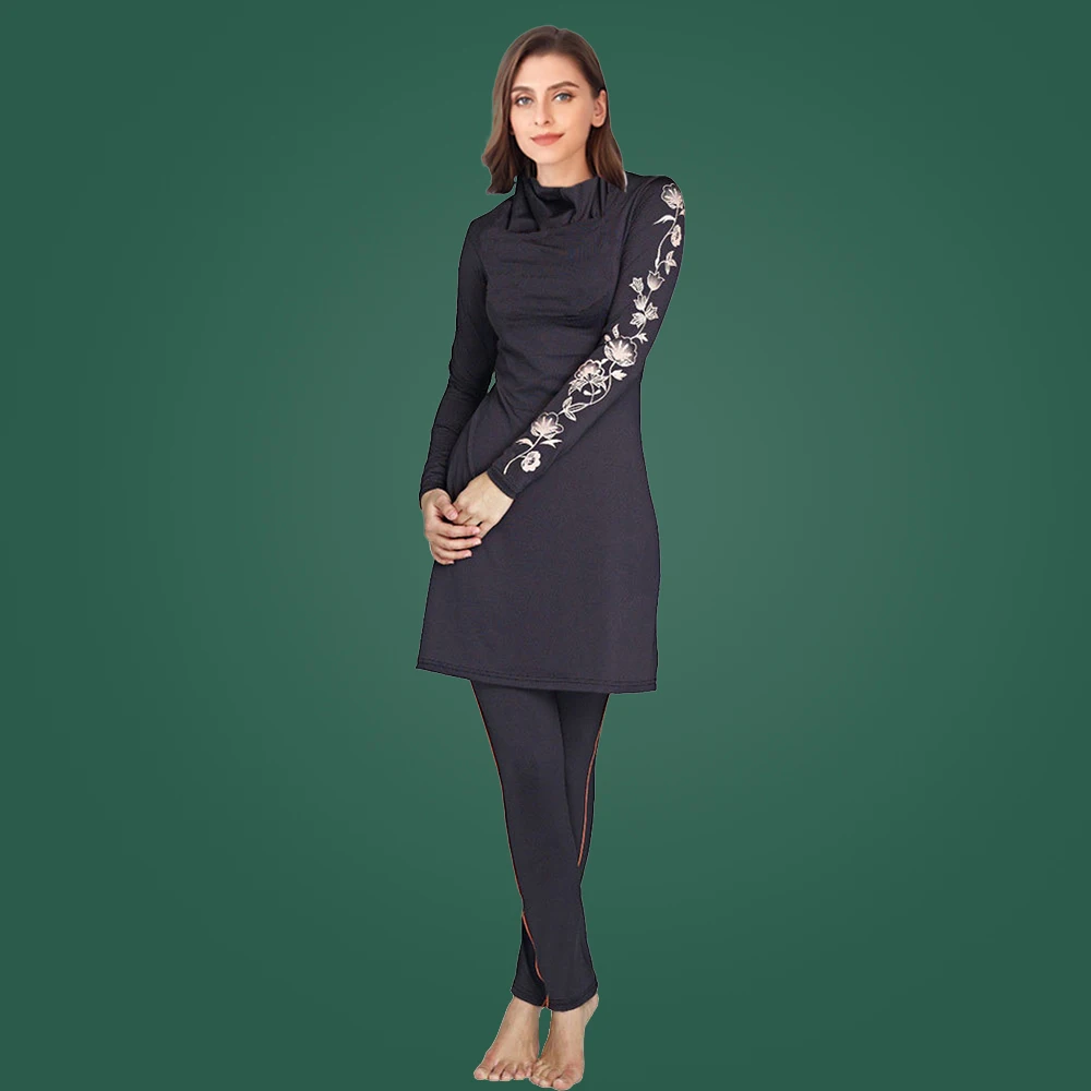 2021 г., мусульманские купальники Burkini, большие размеры, исламские женские бикини, хиджаб, консервативный черный купальник с длинным рукавом, женский купальный костюм