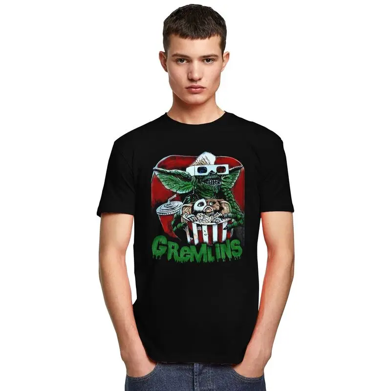Мужская футболка с надписью Gremlins и юмористическим рисунком, хлопковая футболка с короткими рукавами, модная футболка, Повседневная футболка Gizmo Mogwai Monster Fi, топы большого размера