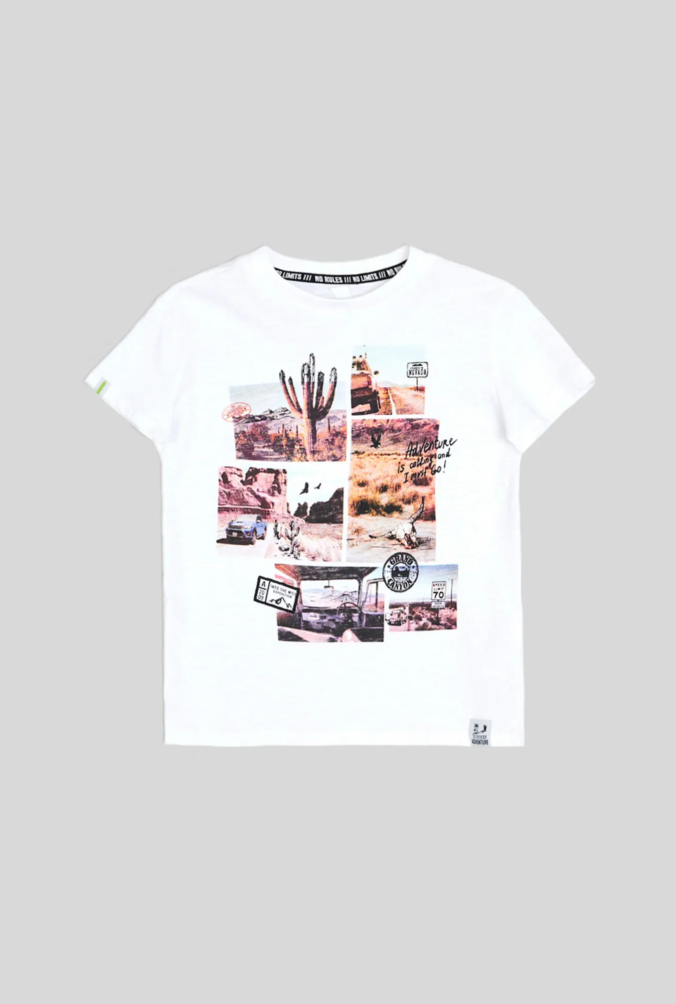 Футболка для мальчика свободного кроя, дополненная принтом, выполнена из натуральной, гипоаллергенной, приятной к телу и «дышащей» ткани. Рост/размер одежды модели на фото: 110.