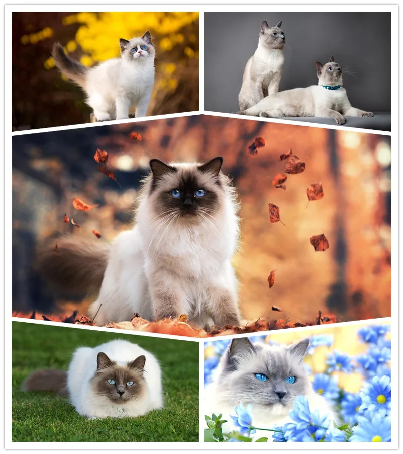 Алмазная 5D Вышивка тайский Сиамский кот, мозаика с круглыми стразами сделай сам, украшение для дома