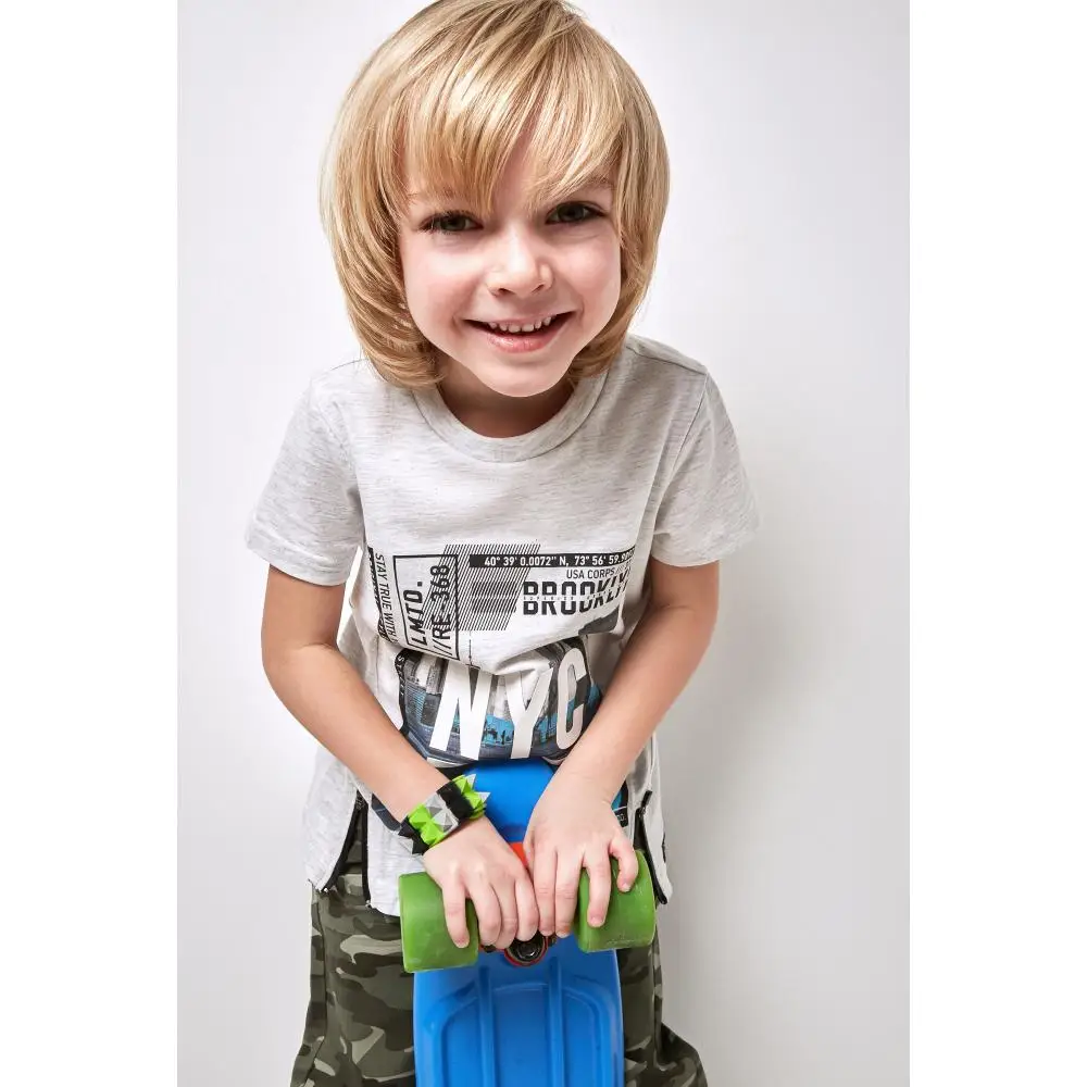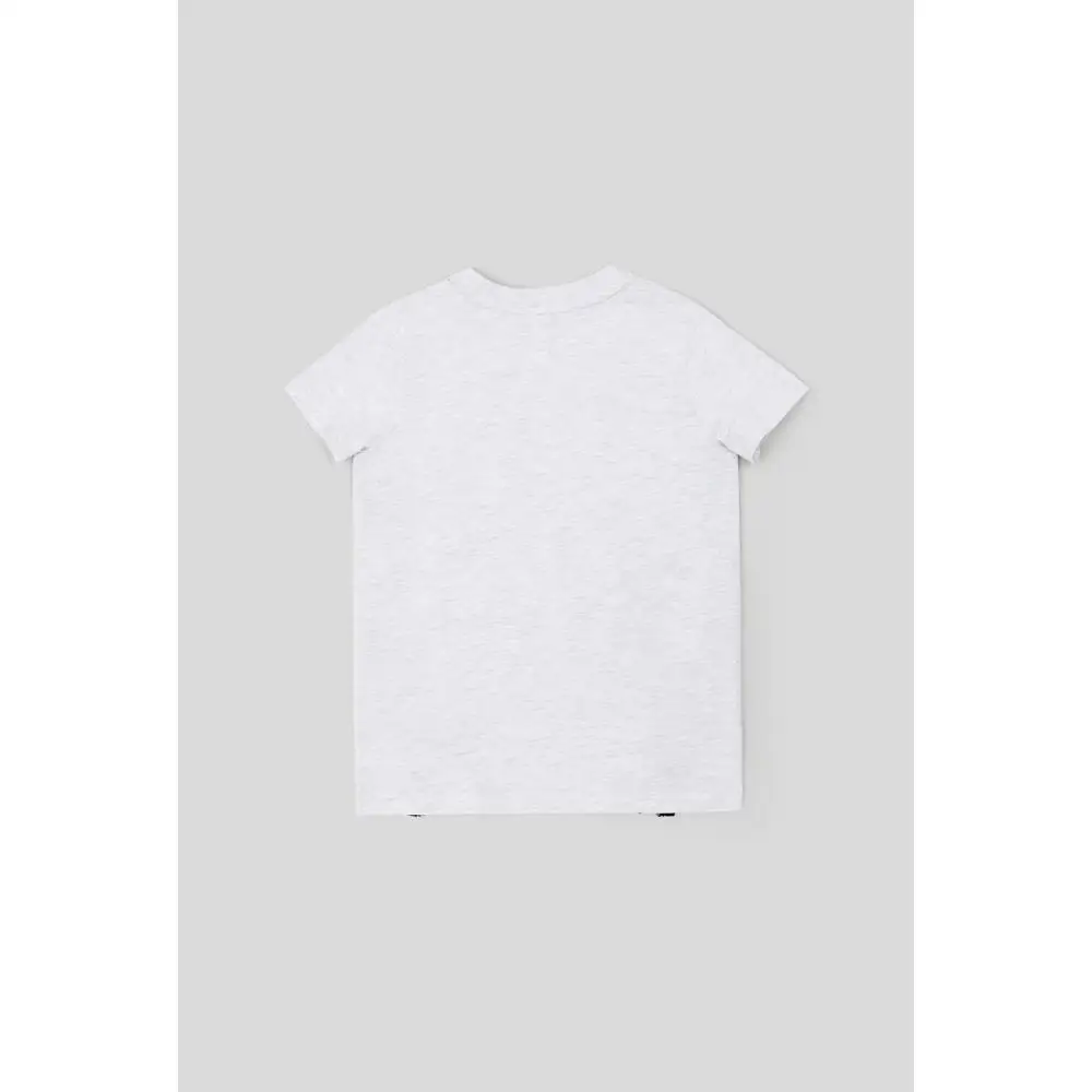 Светло-серая футболка прямого кроя с принтом выполнена из натурального, гипоаллергенного, приятного к телу и «дышащего» материала. Рост/размер одежды модели на фото: 110.