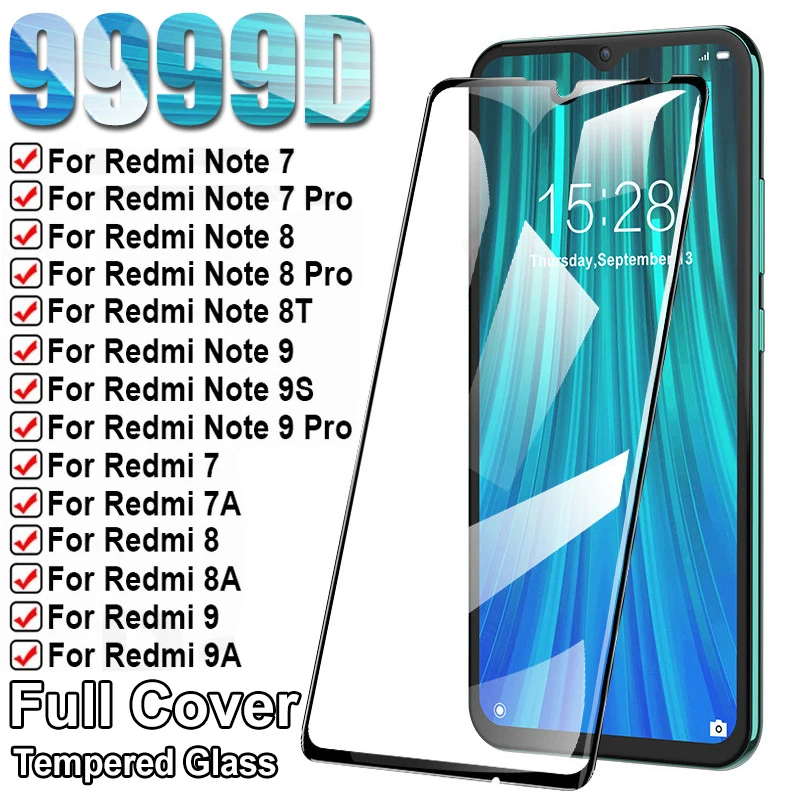 9999D защитное стекло на Redmi 8A 9A 7A 9C 9T, закаленное защитное стекло для Xiaomi Redmi Note 7 8 9 Pro 8T 9S, стеклянная пленка