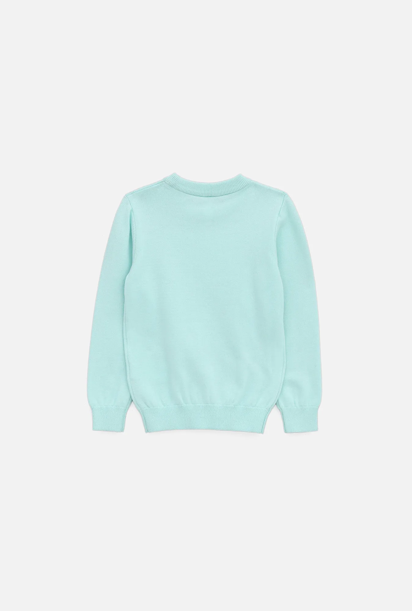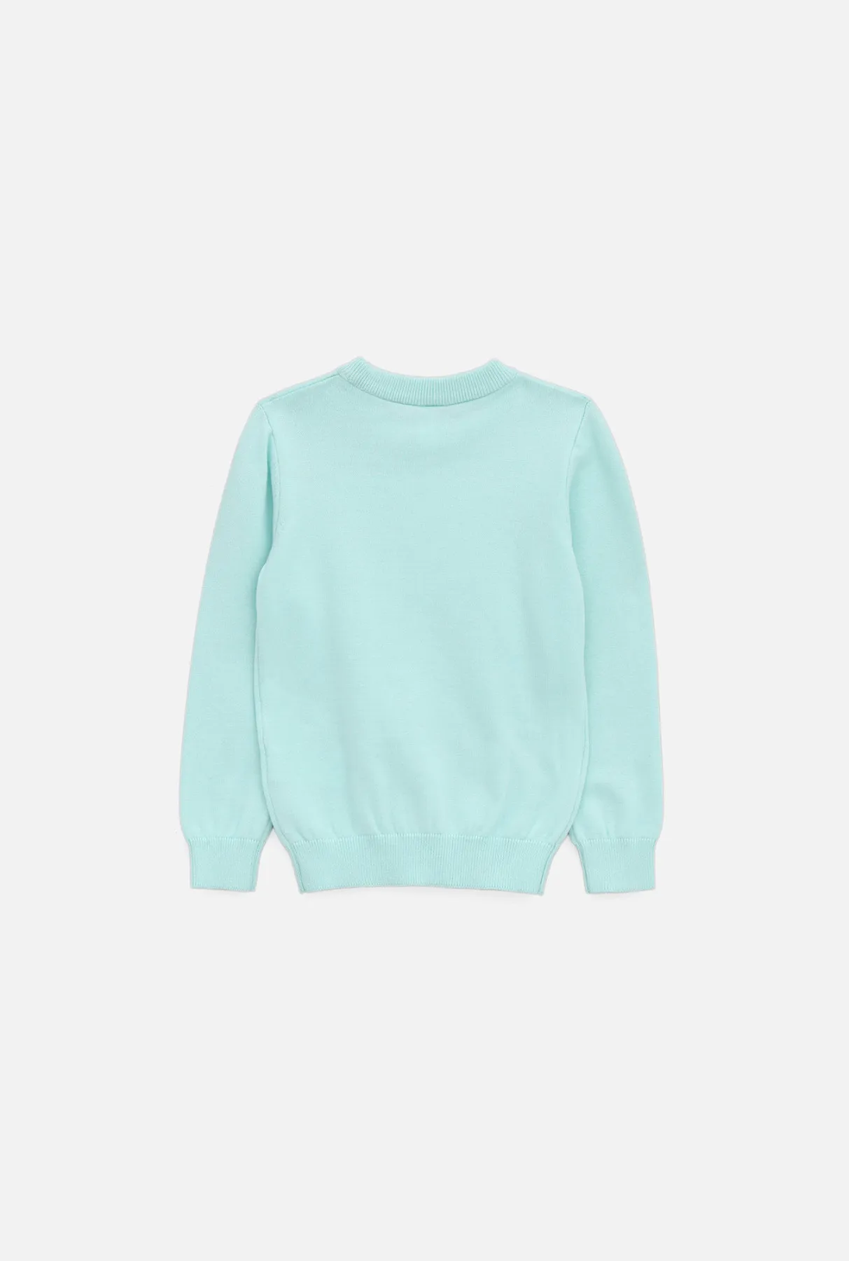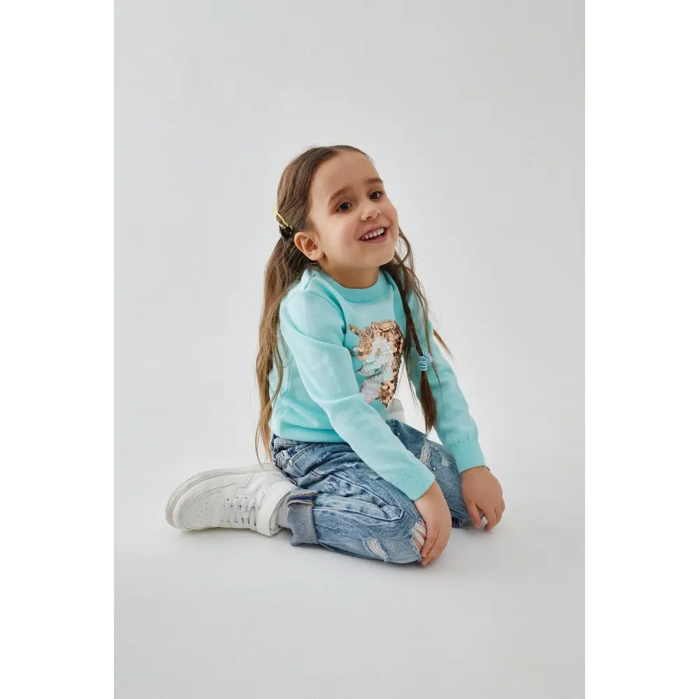 Светло-бирюзовый свитшот с изображением единорога, вышитым пайетками, произведён из натурального, гипоаллергенного, приятного к телу и «дышащего» материала. Рост/размер одежды модели на фото: 110.
