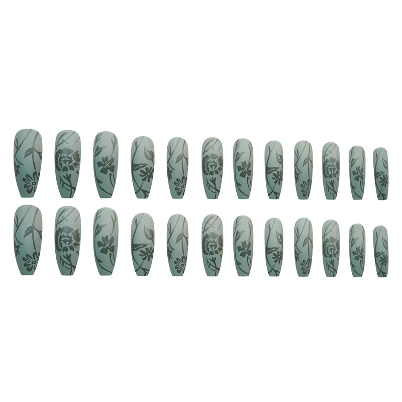 Нажимайте на ногти Длинные Зеленые грушевидные и зеленые лепестки Носите наклейки для ногтей Готовые Ногти 24 наклейки для ногтей с клеем подарок на день рождения