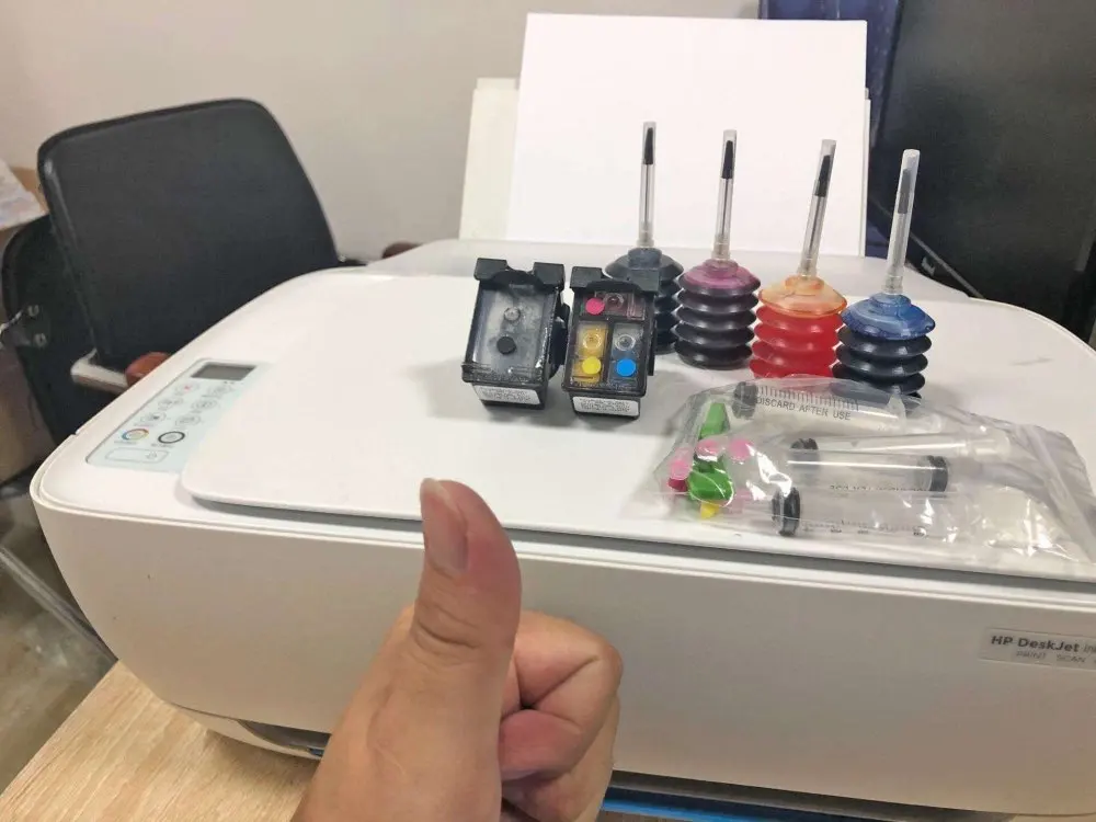 Поставляется со всеми необходимым товаром, включая дополнительные детали для покрытия входов. Я страдал от перезарядки и грязи. Но потом стало известно, что всегда работает серия prissy. 1. Каждый картридж поддерживает около 3 мл, поэтому я ставлю 2 мл черного цвета и менее 1 мл каждого цвета. 2. После injetei 30 мл каждого цвета 3. После того, как я очистил весь картридж и затопил в опоре, которая имеет отверстие под ним. Погрузите зеленую часть, положите картридж, погрузите шприц и вытяните чернила. 4. Когда Положите чернила, это то, как удалить излишки. Очень важно выполнить эти шаги для работы.