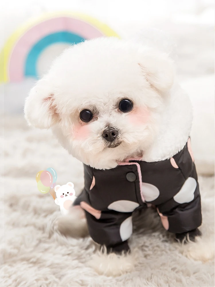 Зимняя одежда для собак, толстовка, пальто в горошек, хлопковое пал...