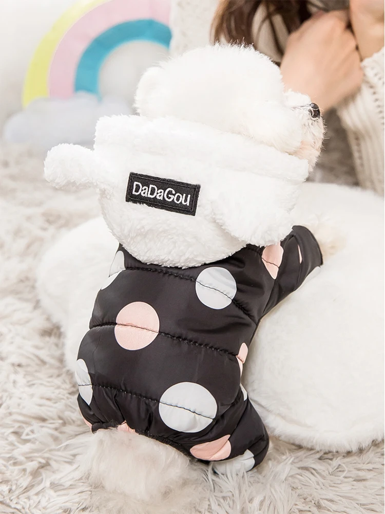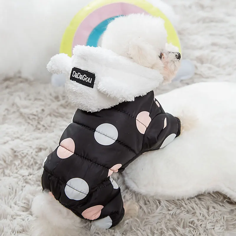 Зимняя одежда для собак с капюшоном пальто для детей из хлопка с узором в горошек, утепленное пальто, зимняя теплая одежда для маленьких собак свитер со щенком собак домашних животных