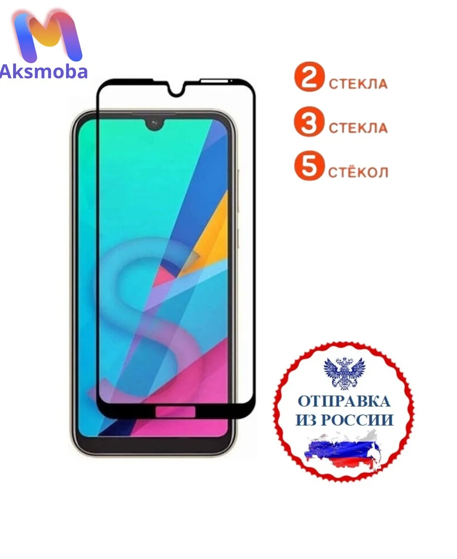 Защитное стекло для Honor 8S Y5 2019, черная рамка, с отступами от краев