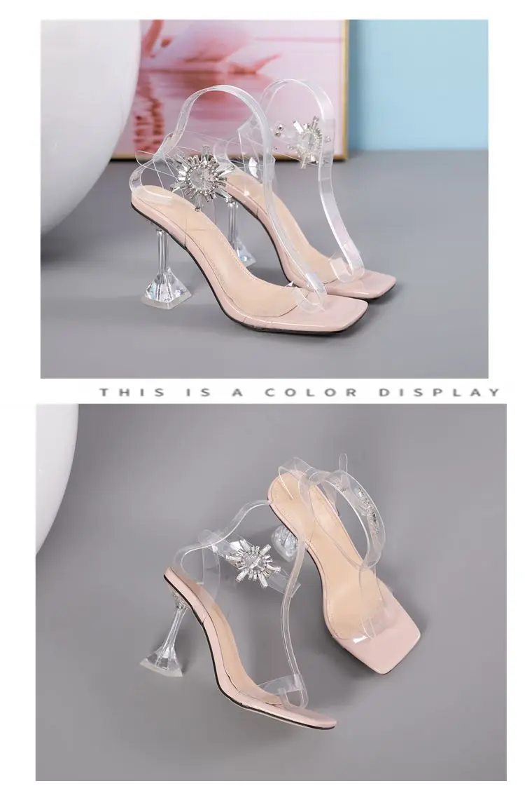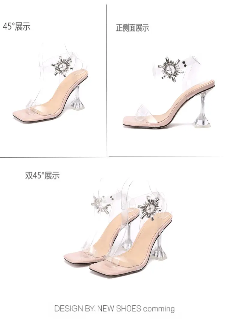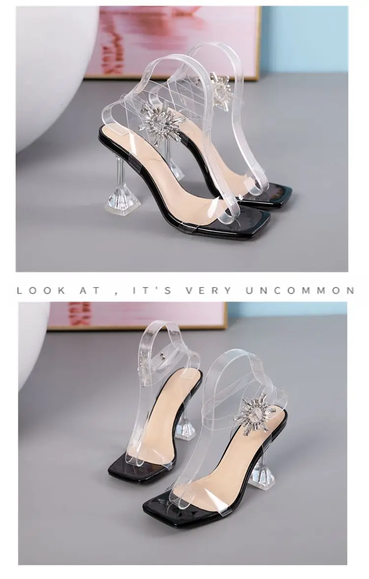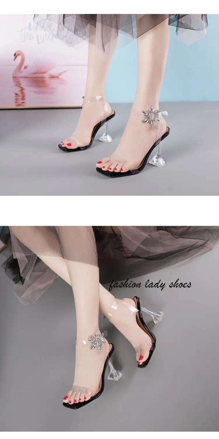 Босоножки женские на высоком каблуке 11 см, прозрачные, с цветком от солнца, 2021
