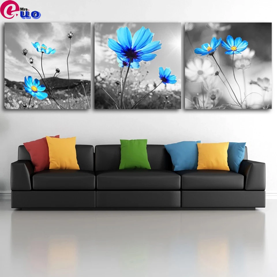Триптих 5d алмазная картина синий цветок картина с изображением маргариток для гостиной настенный Декор 3 предмета синий Демон цветы серый