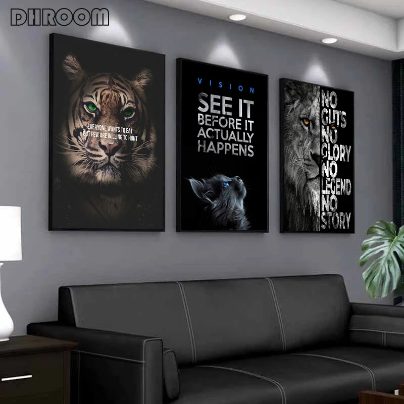 Животное, вдохновляющий плакат, холст, настенные картины, Лев, слон, картина для гостиной, плакаты и принты, настенные картины