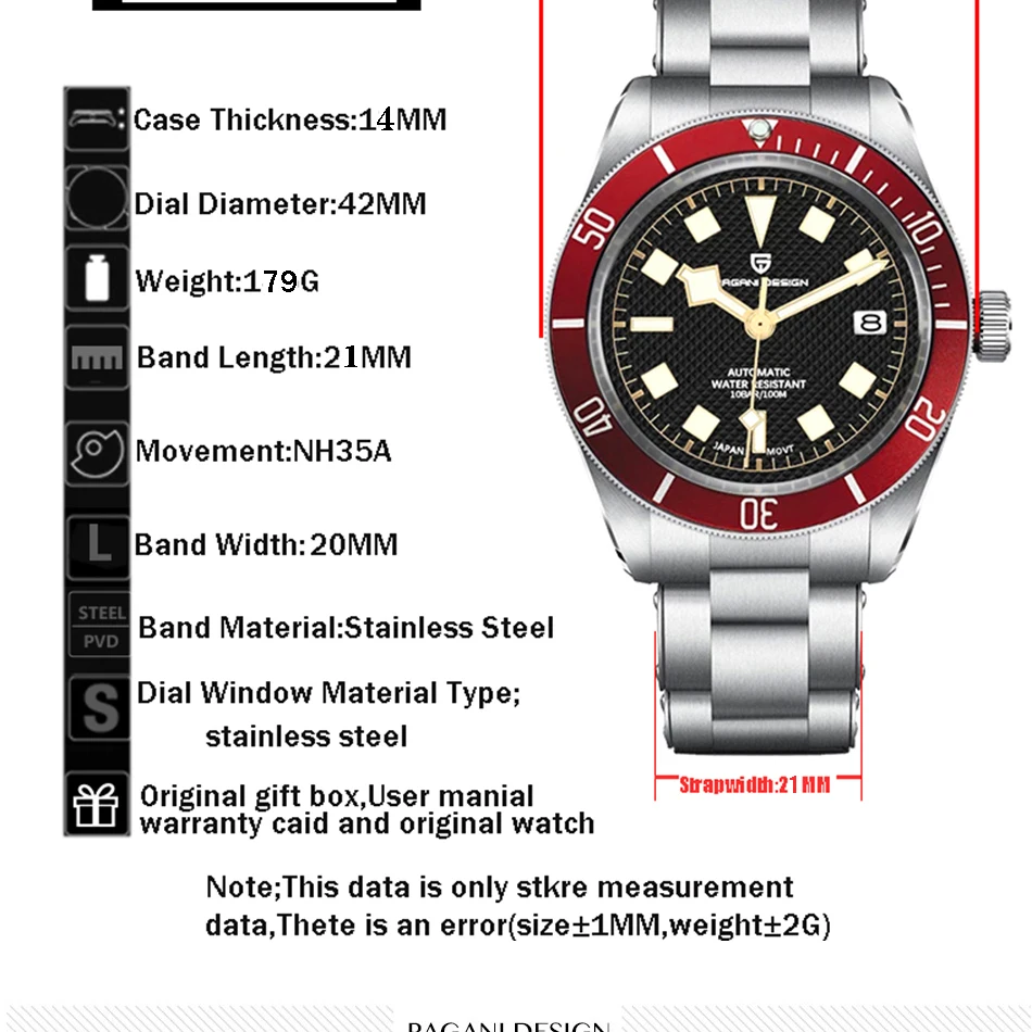 Новые часы PAGANI DESIGN noun подводный спорт Для мужчин, часы от топ бренда, роскошные механические часы 100 м Водонепроницаемый Нержавеющаясталь NH35 двигаться Для мужчин t