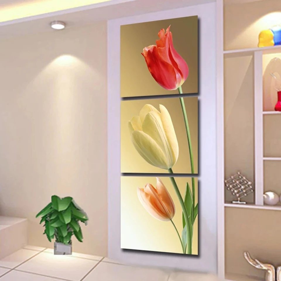 5d Diy картины для алмазной вышивки домашний Декор 3 шт Цвет Элегантные тюльпаны картины модульные настенные художественные цветы для гостиной постер
