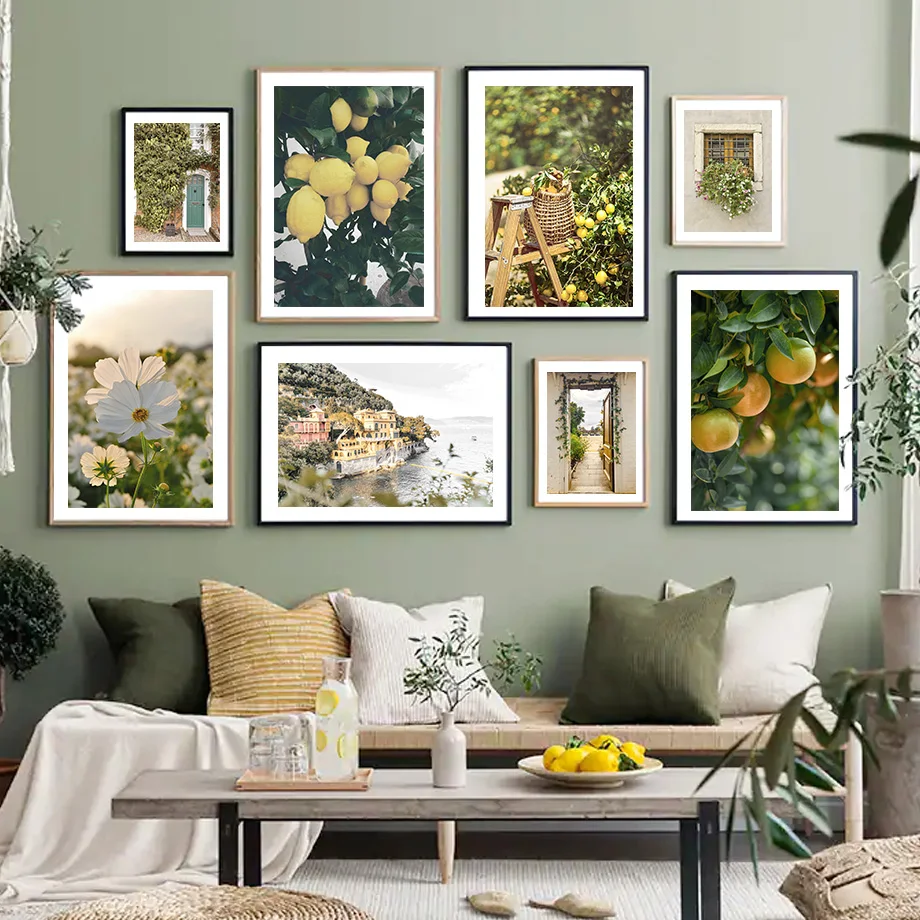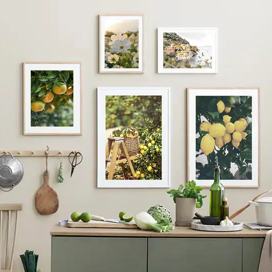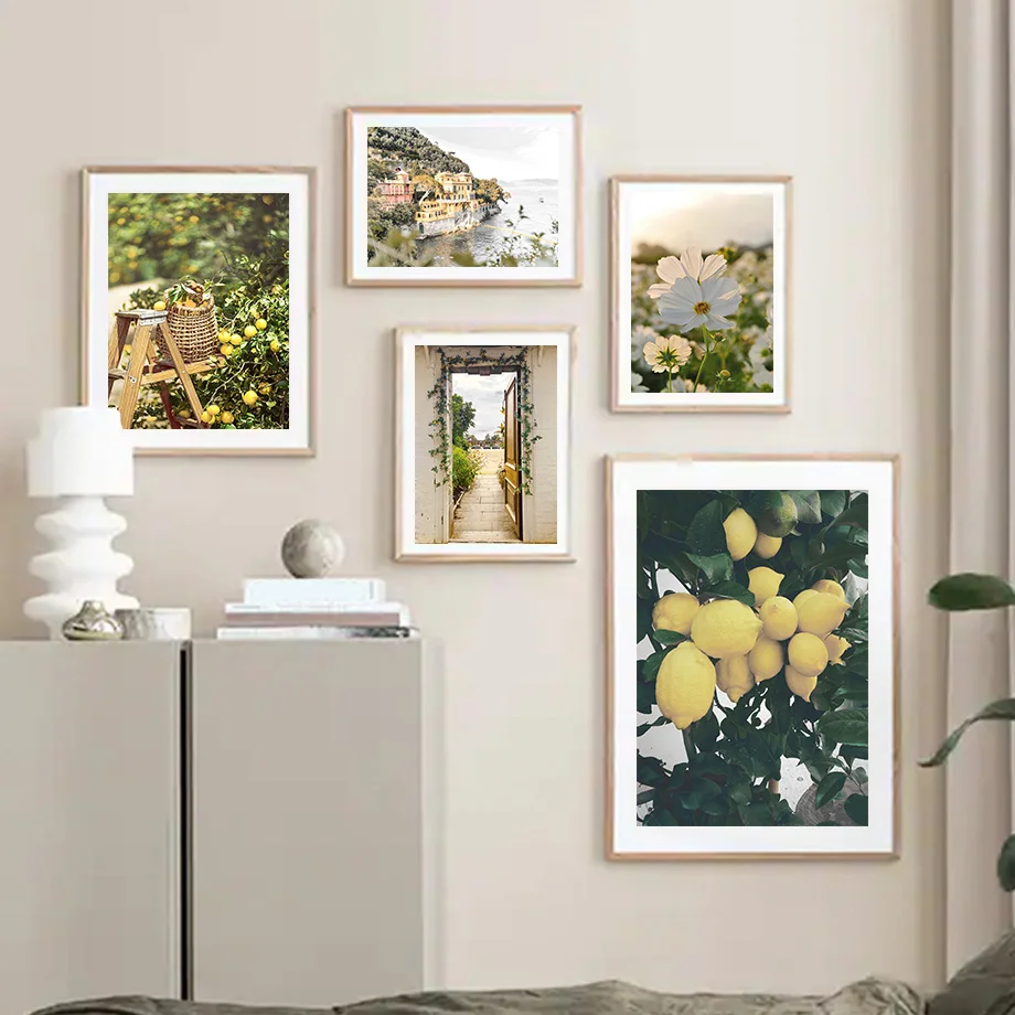 Ромашки лимон оранжевый дом окно стены Искусство Холст Картина скандинавские плакаты и принты стены картины для гостиной эстетика декор комнаты