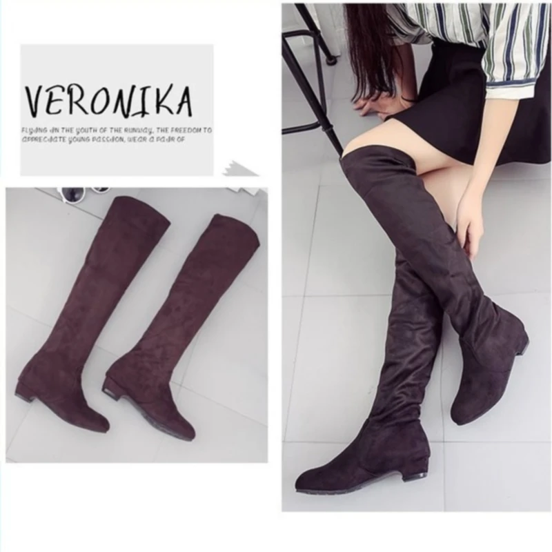 Женские высокие сапоги, осенне-зимние сапоги выше колена из флока