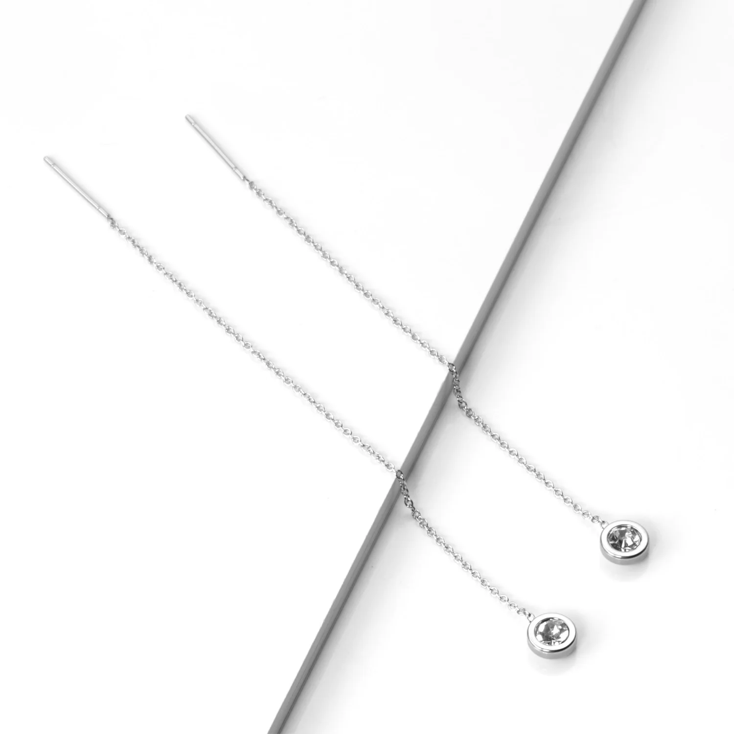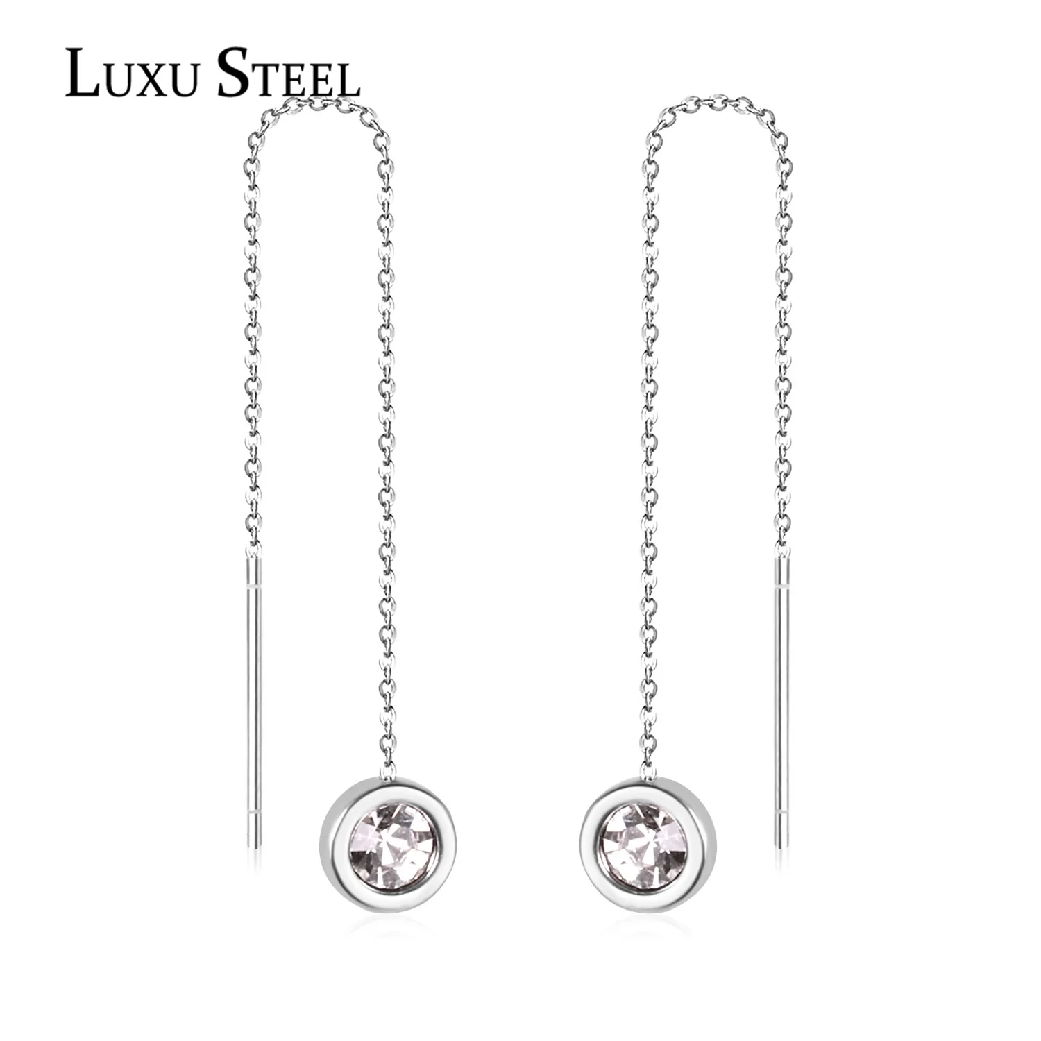 LUXUSTEEL 2021 круглые серьги-капли серебряного цвета из нержавеющей стали CZ геометрические длинные серьги колье бижутерия модные ювелирные изделия