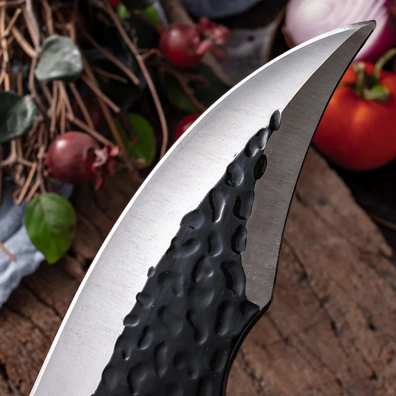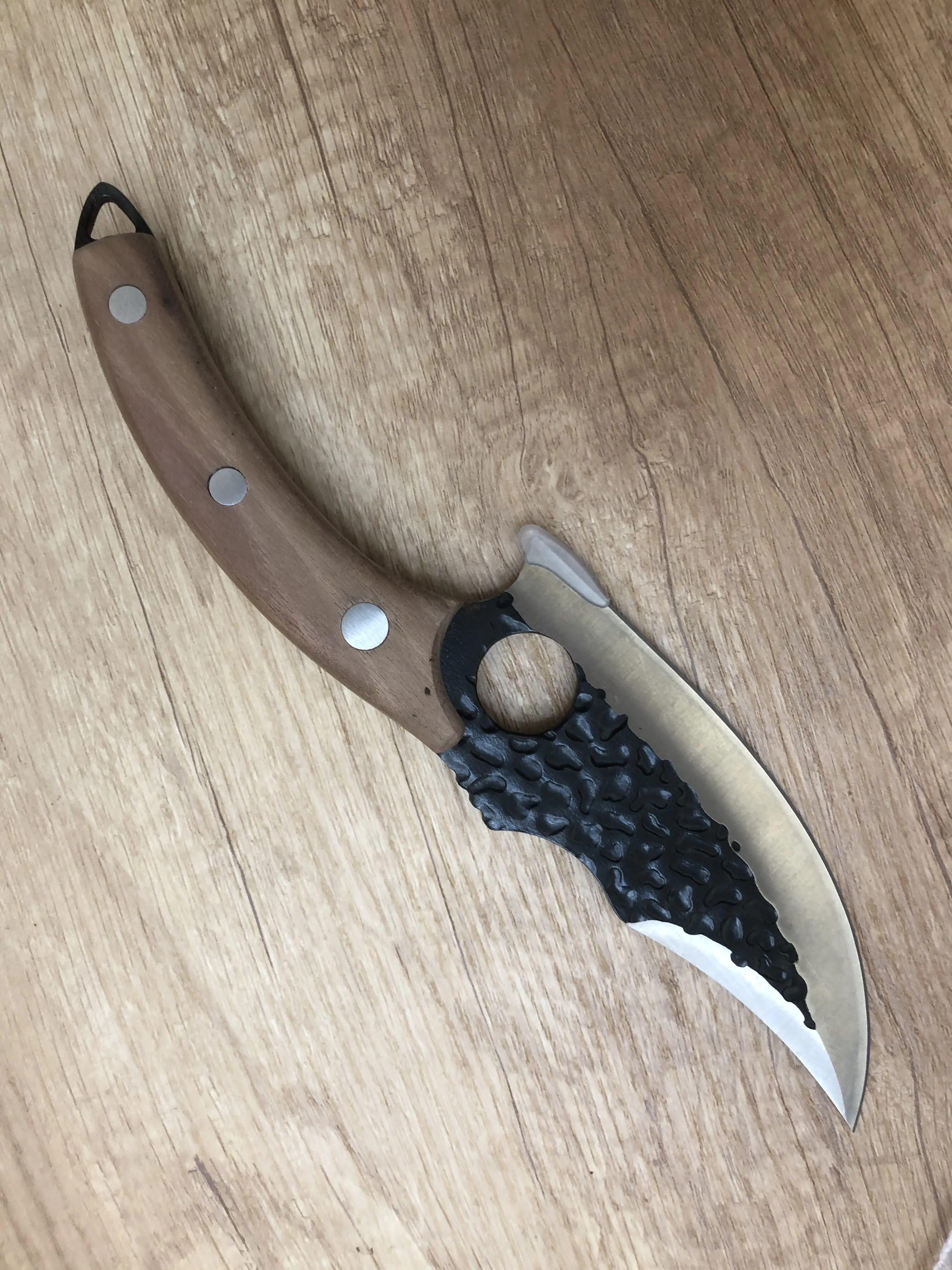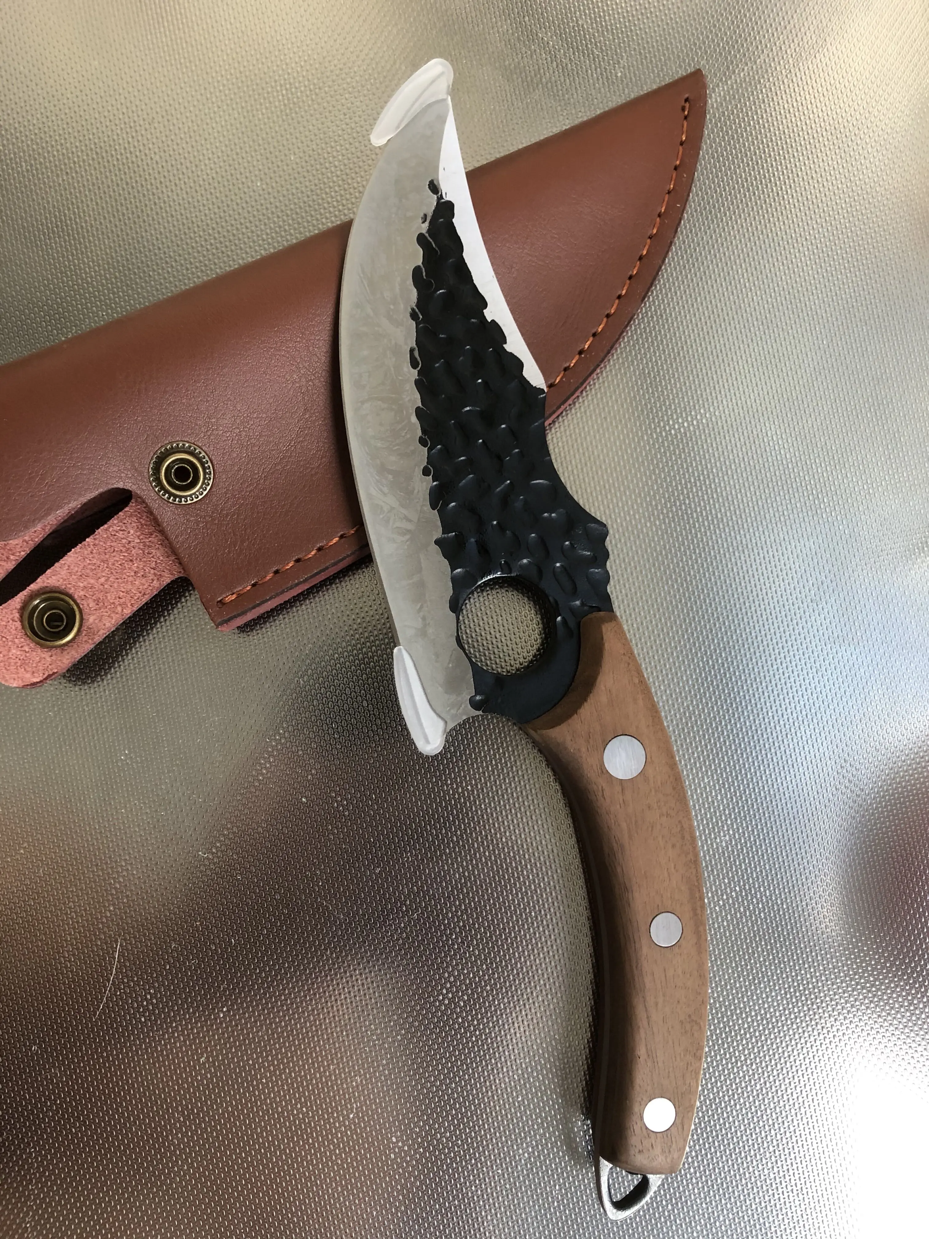 1. Высокое качество-имейте в виду, что этот нож ручной работы из высокоуглеродистой стали не безопасен для мытья в посудомоечной машине. По сравнению с мясными ножами, изготовленными из обычной нержавеющей стали, наши кованые кухонные ножи обладают исключительной производительностью в удержании края и более длительным сроком службы. 6-дюймовый прочные лезвия прошел несколько ручной работы и измельчении устойчивость для невероятно sharp режущей кромки.2. Уникальная кожаная оболочка-уличный нож шеф-повара оснащен практичной мягкой кожаной оболочкой для защиты лезвия. Вы можете положить ремень на него для удобной переноски во время кемпинга на открытом воздухе. Портативный нож для кемпинга-ваш идеальный помощник для отдыха, рыбалки, кемпинга и активного отдыха на открытом воздухе.3. Стильный и практичный-уникальная ударопрочная текстура лезвия делает его красивым, чтобы видеть и коррозионно-стойким, а также помогает предотвратить прилипание продуктов. Изогнутая деревянная ручка и большое отверстие для пальцев На лезвиях обеспечивают надежное сцепление для превосходного контроля во время филе рыбы, измельчения овощей и измельчения мяса.4. Многоцелевой -- этот нож ручной работы относится к многофункциональному кухонному Ножу. Изогнутое лезвие идеально подходит для многих кухонных задач, таких как обрезка грудинки, нарезка мяса и измельчение овощей, разбивание целой курицы и измельчение ребрышек ягненка.