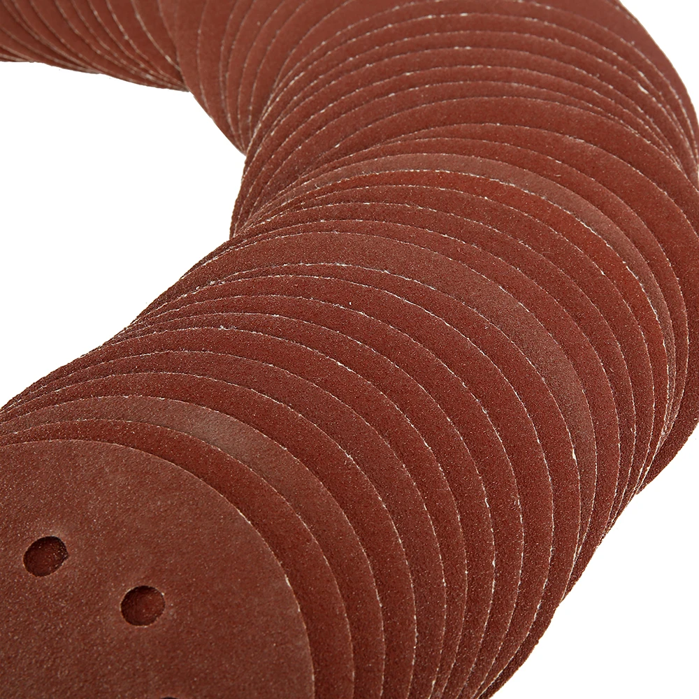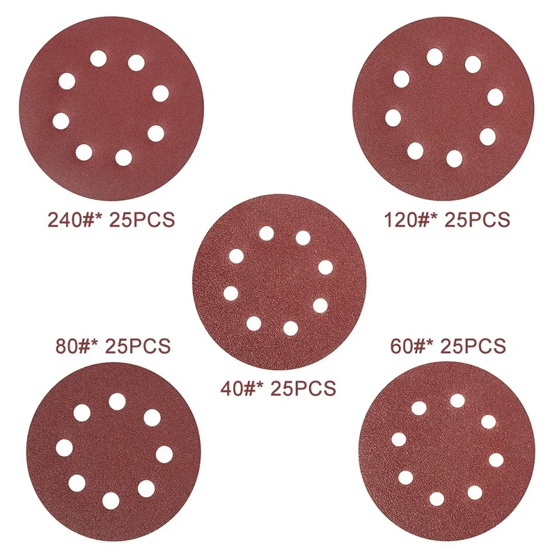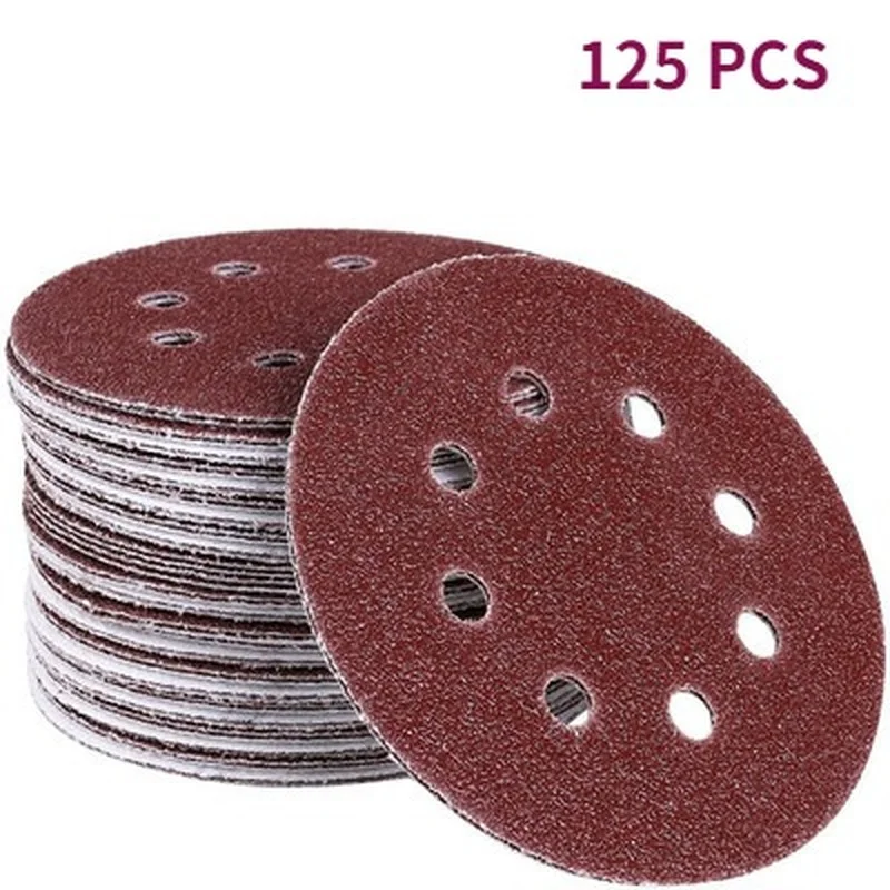 Наждачная бумага, 125 шт., 5 дюймов, 125 мм, Зернистость 40-240, круглые шлифовальные диски, полировальный лист, наждачная бумага, зернистость 8 отверстий, абразивный диск