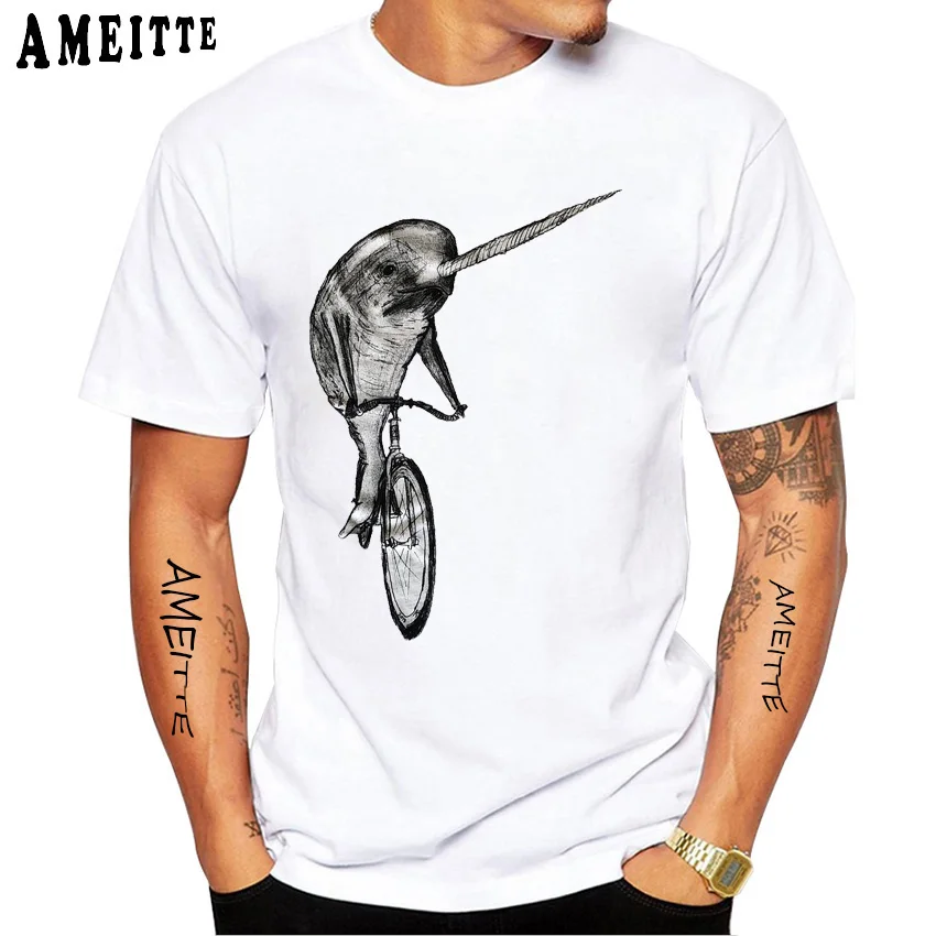 Винтажная футболка унисекс с принтом медведя для езды на велосипеде, летняя белая футболка с коротким рукавом с забавными животными на велосипеде, хипстерская Одежда для мальчиков