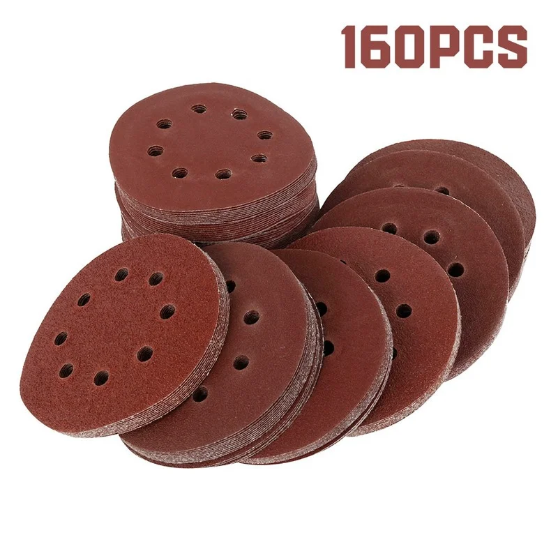 160 шт. 5 дюймов 125 мм круглая наждачная бумага диск с восемью отверстиями пескоструйные листы Зернистость 40-800 крючок и петля шлифовальный диск полировка Прямая поставка