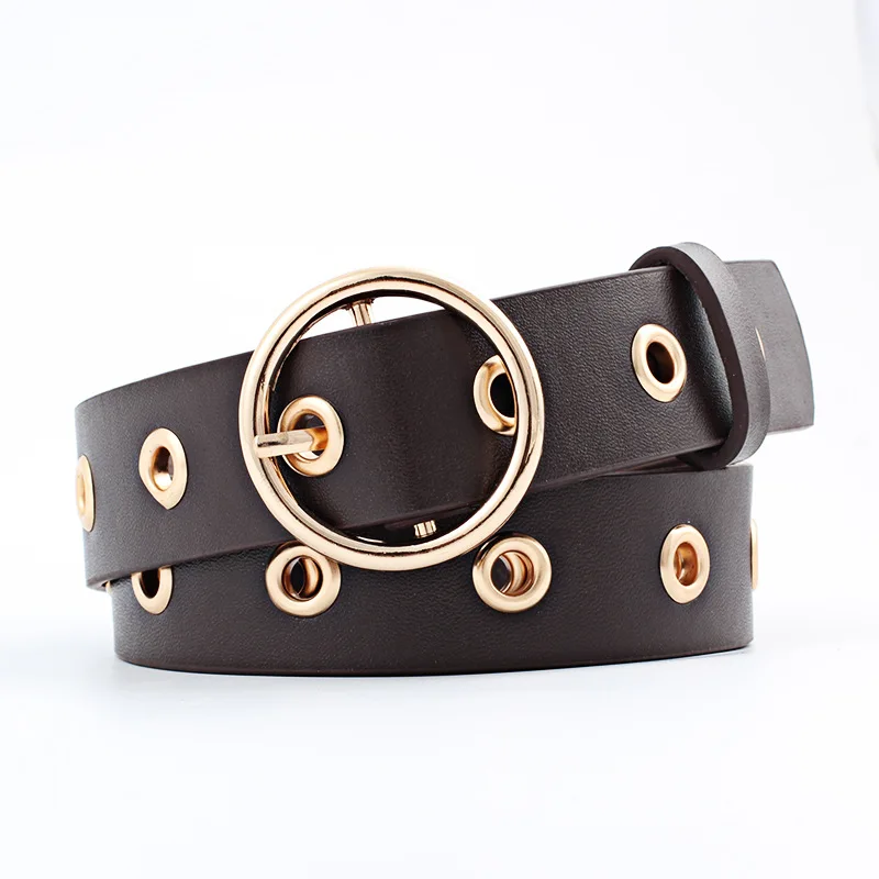 Ремень с круглой пряжкой Женский, модный кожаный аксессуар, чёрный ...