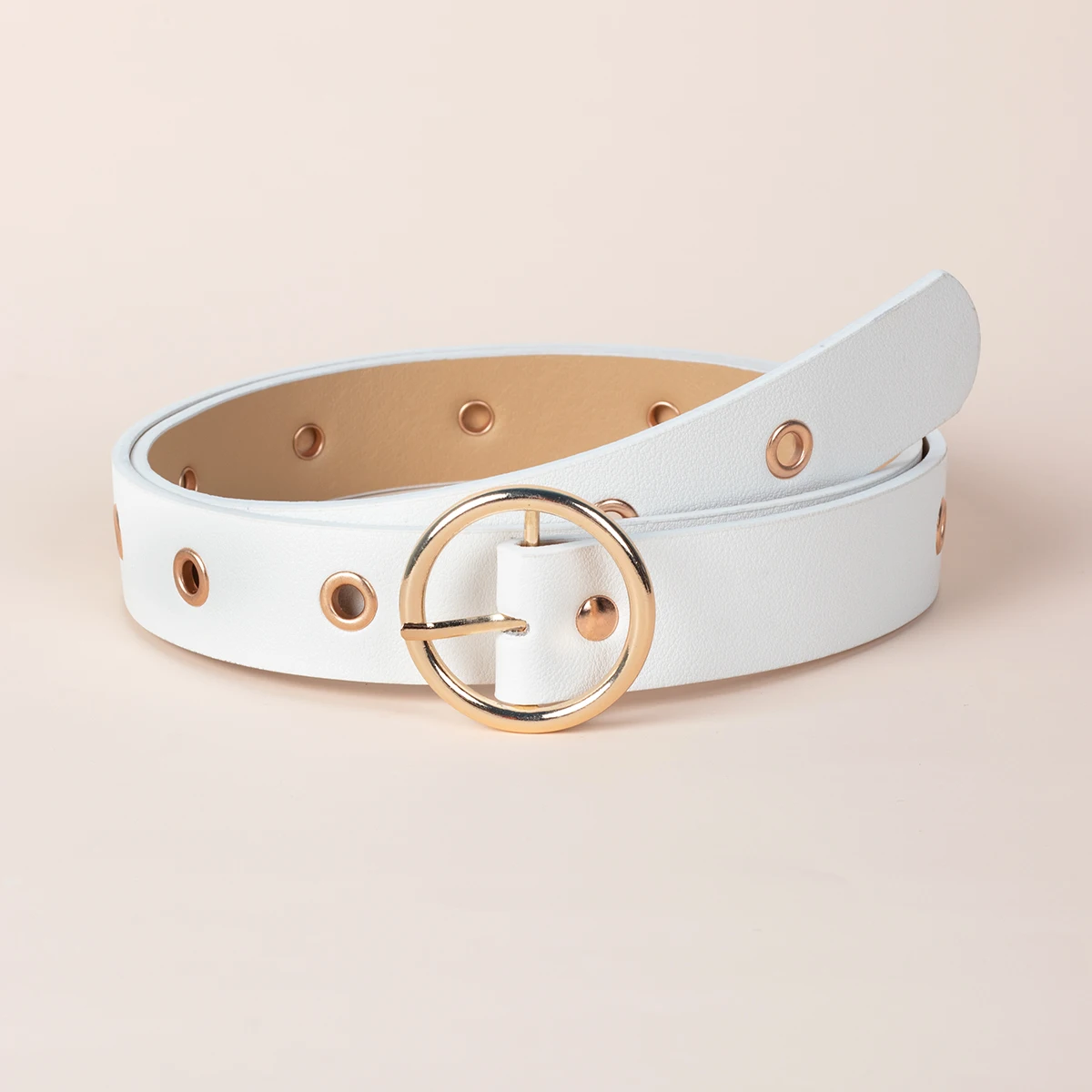 Ремень женский кожаный с круглой пряжкой, черный, розовый, белый, с...