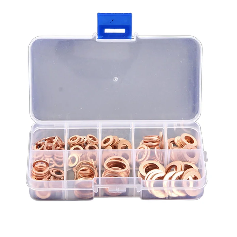 Набор медных шайб 200 шт., уплотнительные гайки и болты в ассортименте с коробкойM8M10M12M14 для автомобиля, лодки, моторного масла