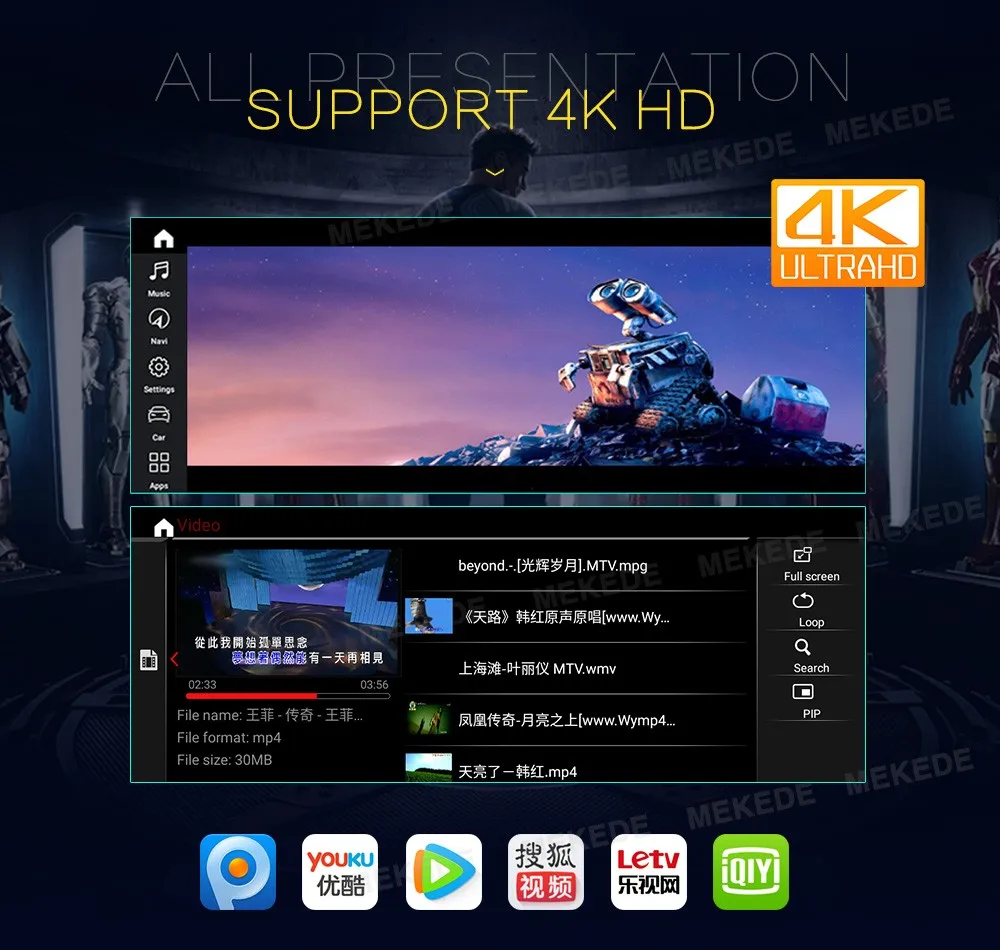 > Поддержка зеркальной связи, Android и iOS> Любой контент со смартфона Android или IOS может отображаться на экране устройства, поэтому вы можете смотреть видео на большом дисплее thr для телефона android, вы даже можете достичь Двунаправленного управления с помощью usb-кабеля для доступа к телефонной книге, карте, музыке и многому другому.