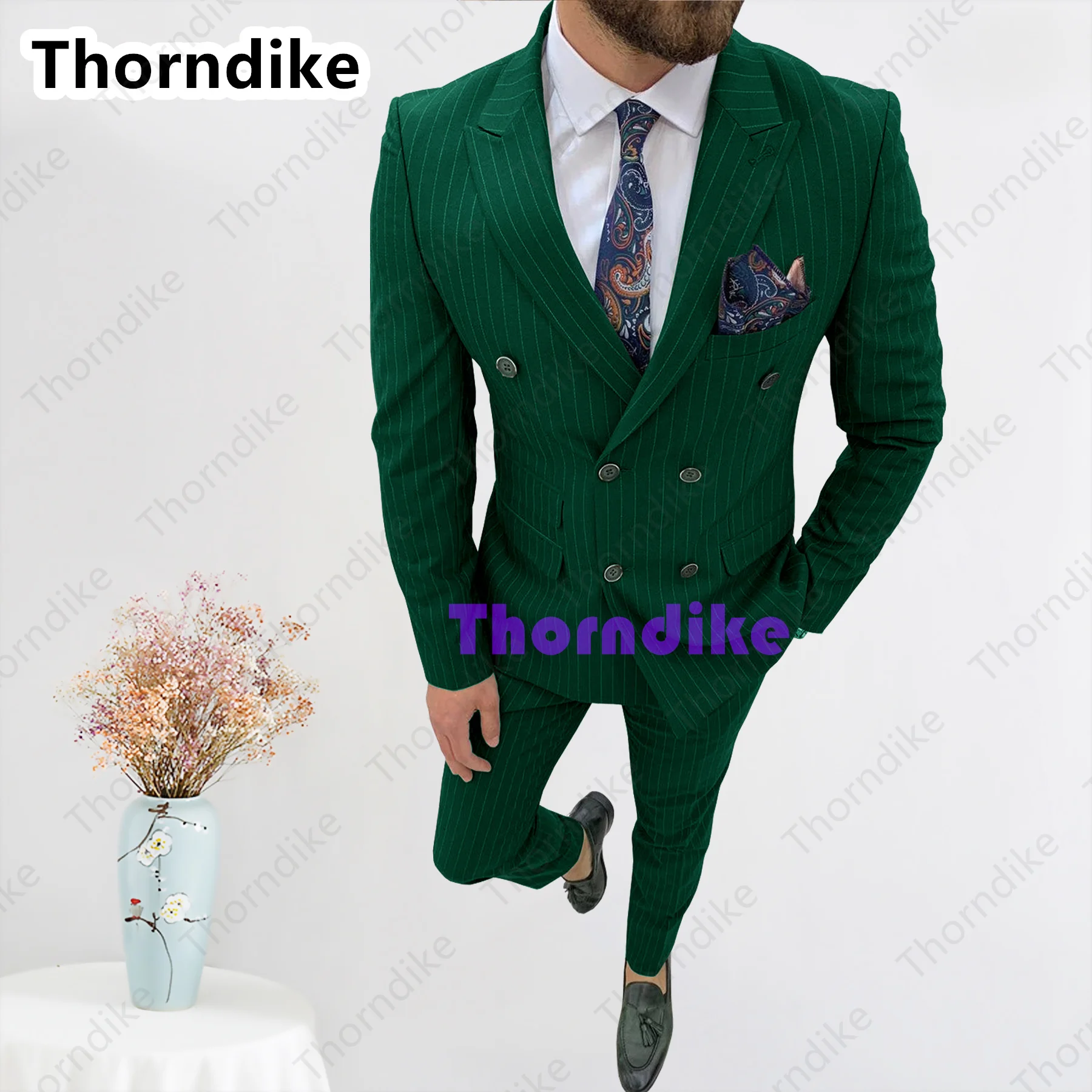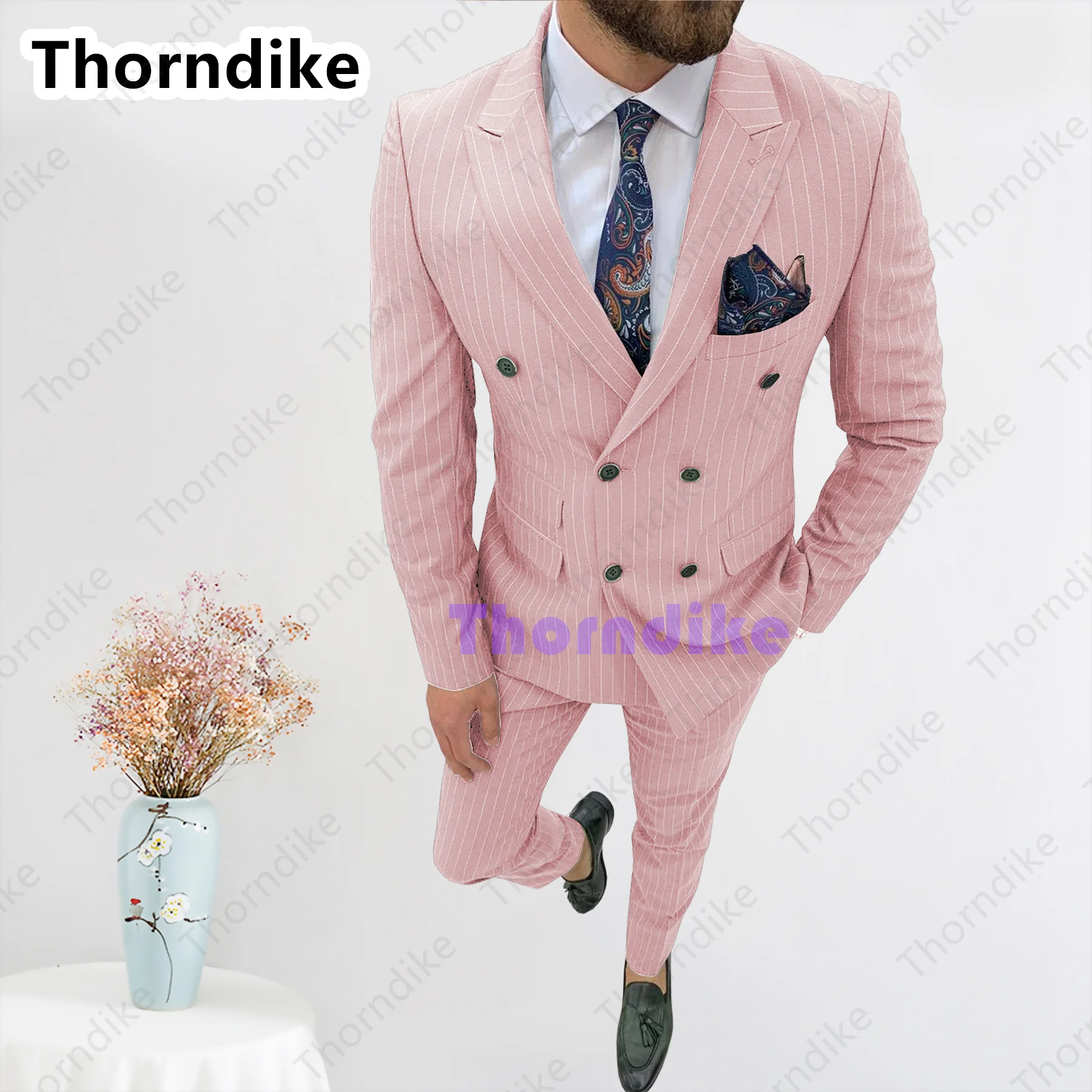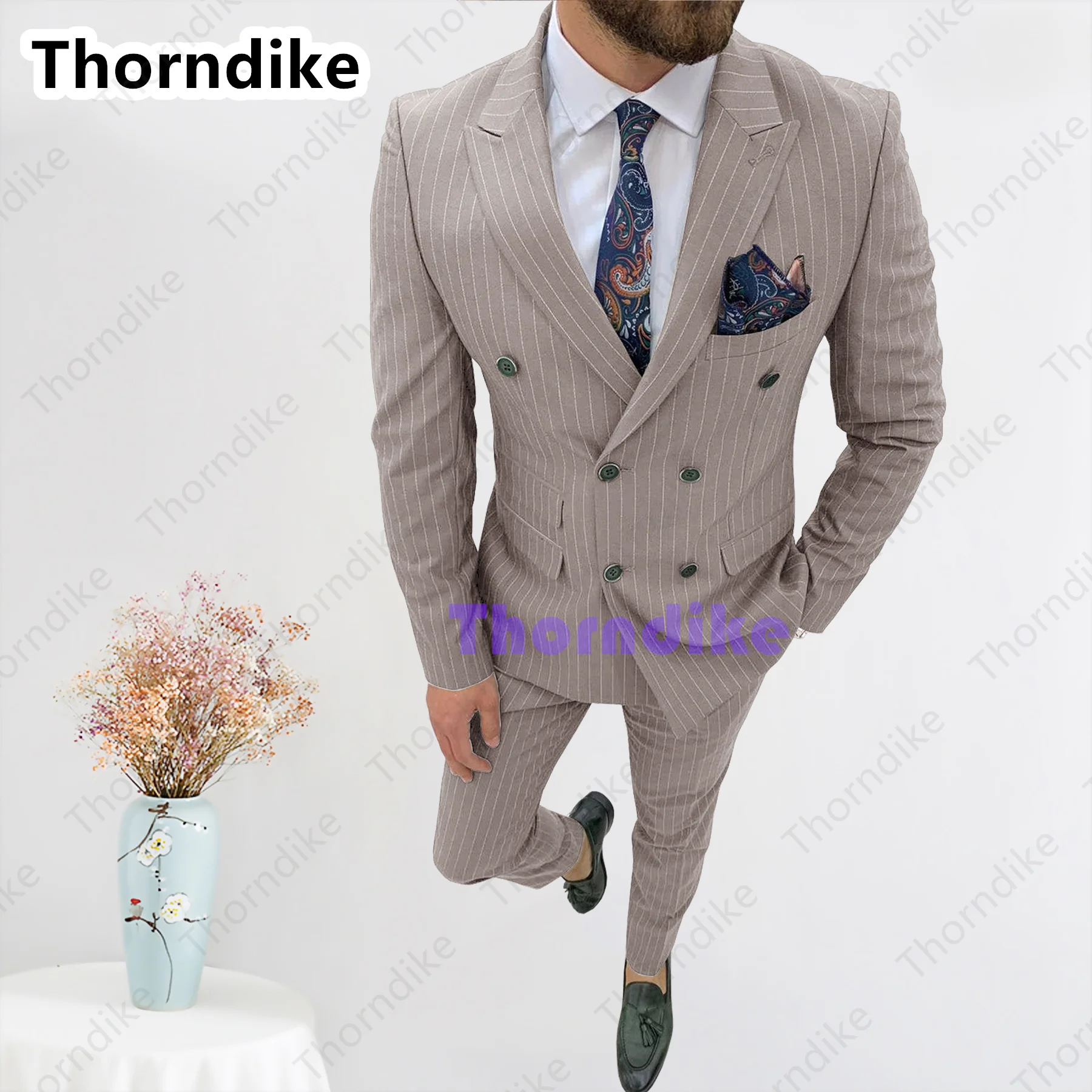 Модный облегающий мужской костюм Thorndike 2021, мужской деловой повседневный костюм-тройка для шафера, комплект из жакета и брюк в полоску по индивидуальному заказу