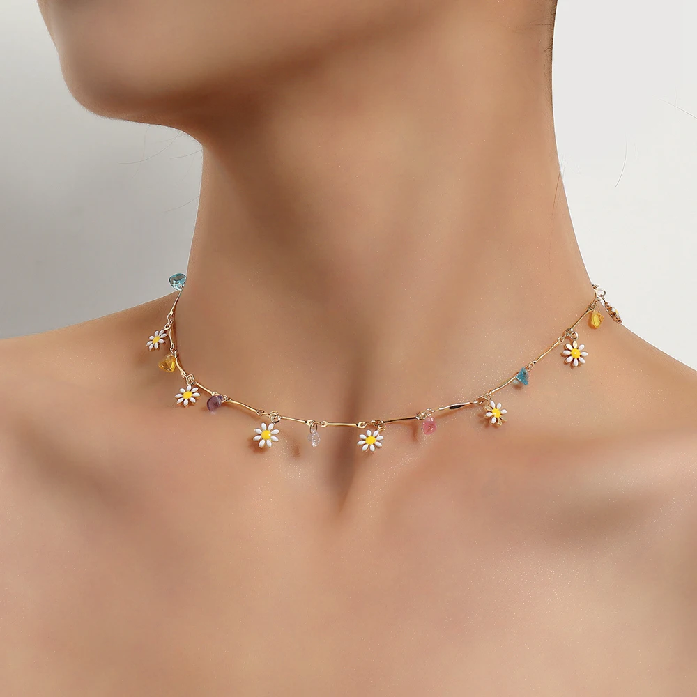 Новые корейские милые цветы ромашки разноцветные бусы браслеты с подвесками заявление короткое колье для женщин, изготовлено вручную украшения для отдыха