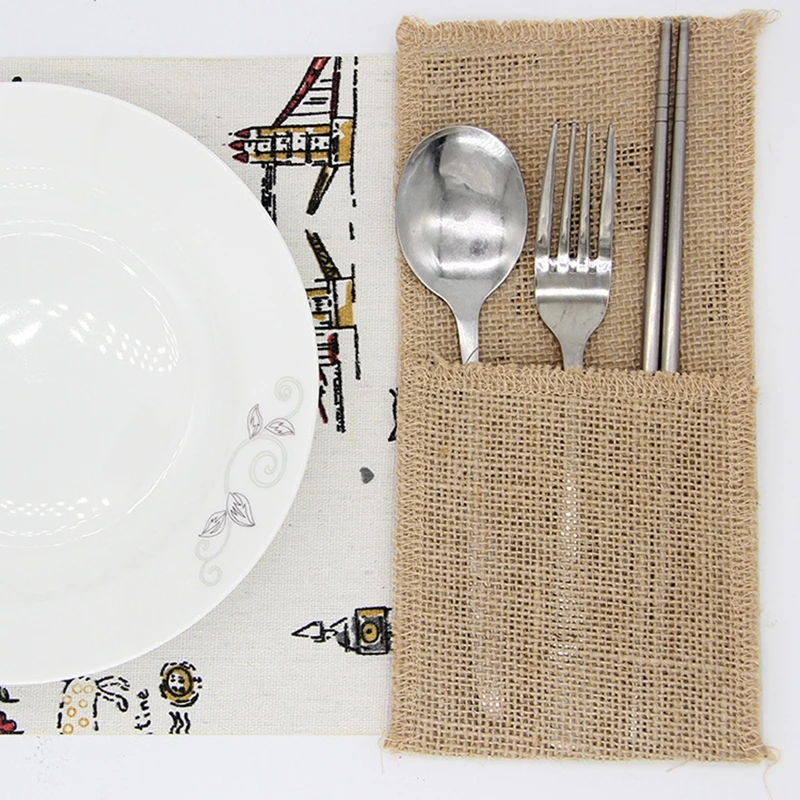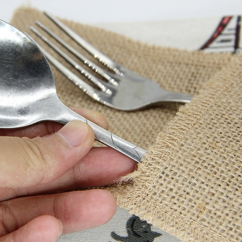2 шт. 5 шт. 10 шт. экологически чистые Простые рождественские Свадебные украшения в европейском стиле сделай сам льняная посуда сумка натуральные столовые приборы