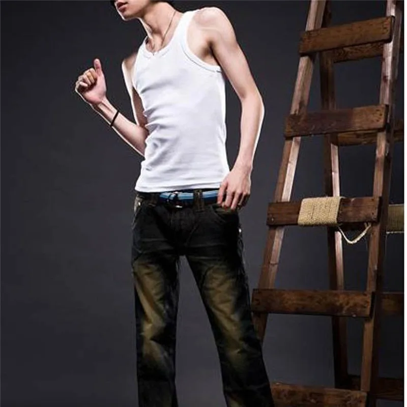 Мужская хлопковая майка, Приталенный жилет без рукавов, синглет для...