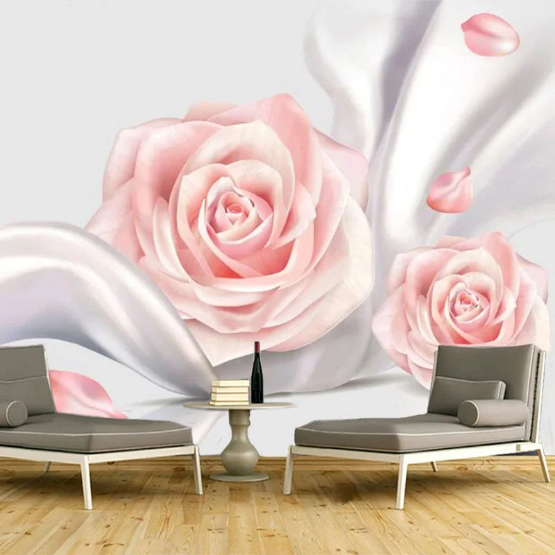 Настенные обои на заказ, современные 3D шелковые розы, Цветочная Роспись стен, фоновые обои для гостиной, телевизора, домашний декор, обои
