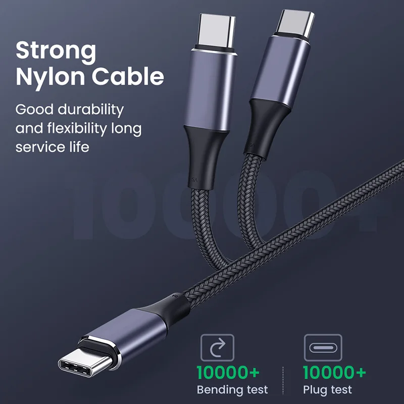 Кабель для быстрой зарядки, USB Type C-Type C, нейлоновый, 100 Вт60...