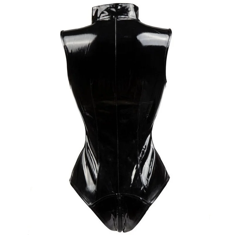 Сексуальный кожаный комбинезон с двойной молнией и открытой промежностью для женщин, эротическое нижнее белье с открытой промежностью, глянцевый корректирующий латексный комплект нижнего белья