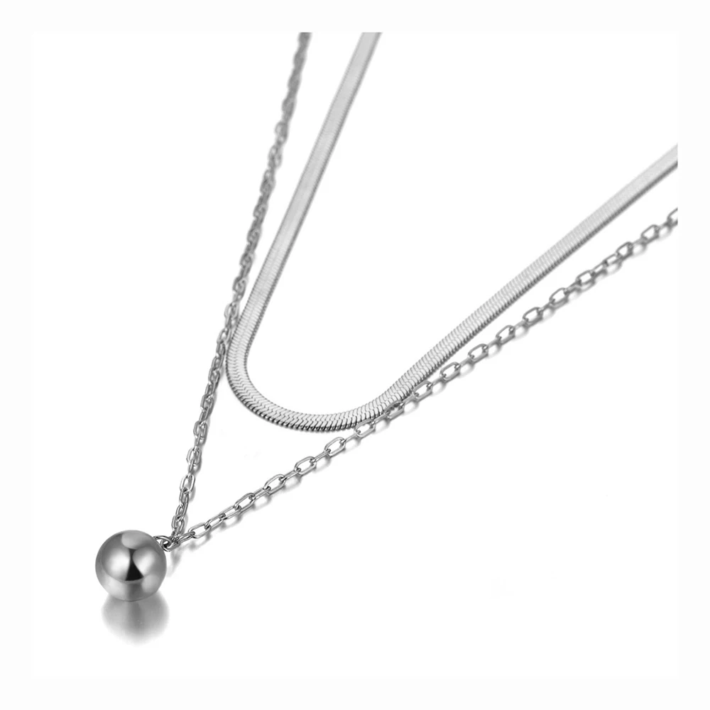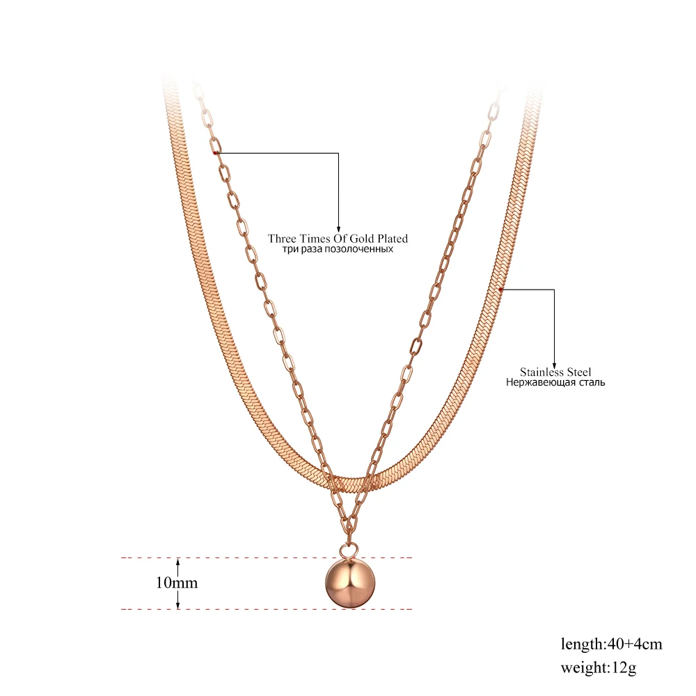JeeMango в богемном стиле 316L из нержавеющей стали с двойным Слои круглый шар колье ожерелья ювелирные изделия, цепочка с подвеской, ожерелье для женщин, JN20070