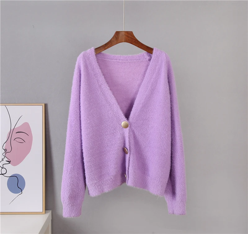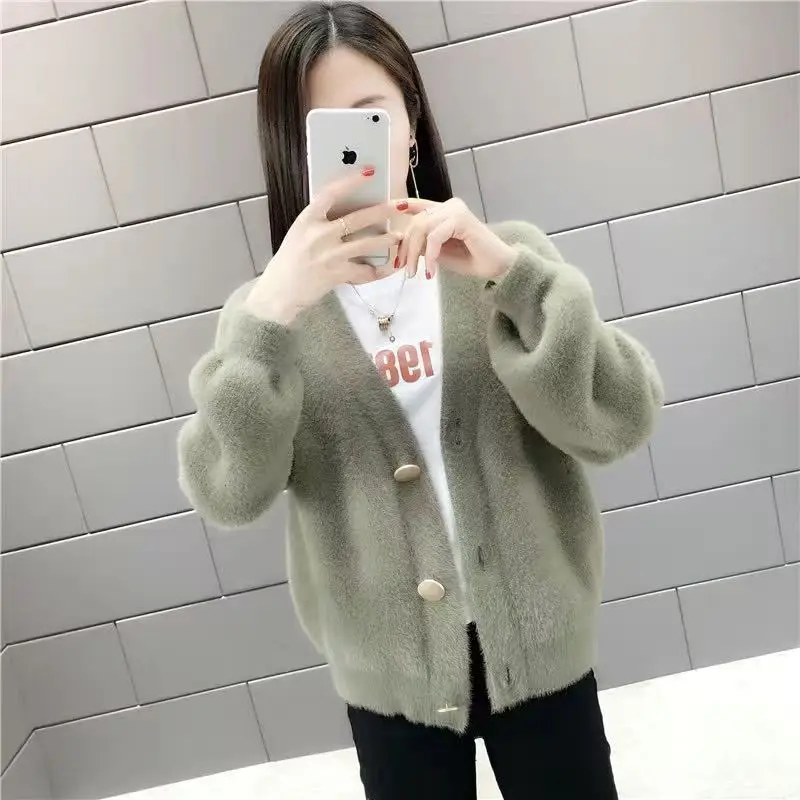 Женский однобортный Кардиган, элегантный теплый вязаный кардиган с V-образным вырезом, теплый толстый Свободный Топ в Корейском стиле, Осень-зима 2021